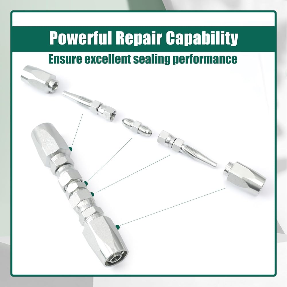 المواصفات: طقم إصلاح خرطوم هيدروليكي واحد بسلكين قابلين لإعادة الاستخدام مقاس 1/2 بوصة رقم 08. يُستخدم مع خرطوم بقطر داخلي 1/2 بوصة وقطر خارجي عند 0.81 بوصة