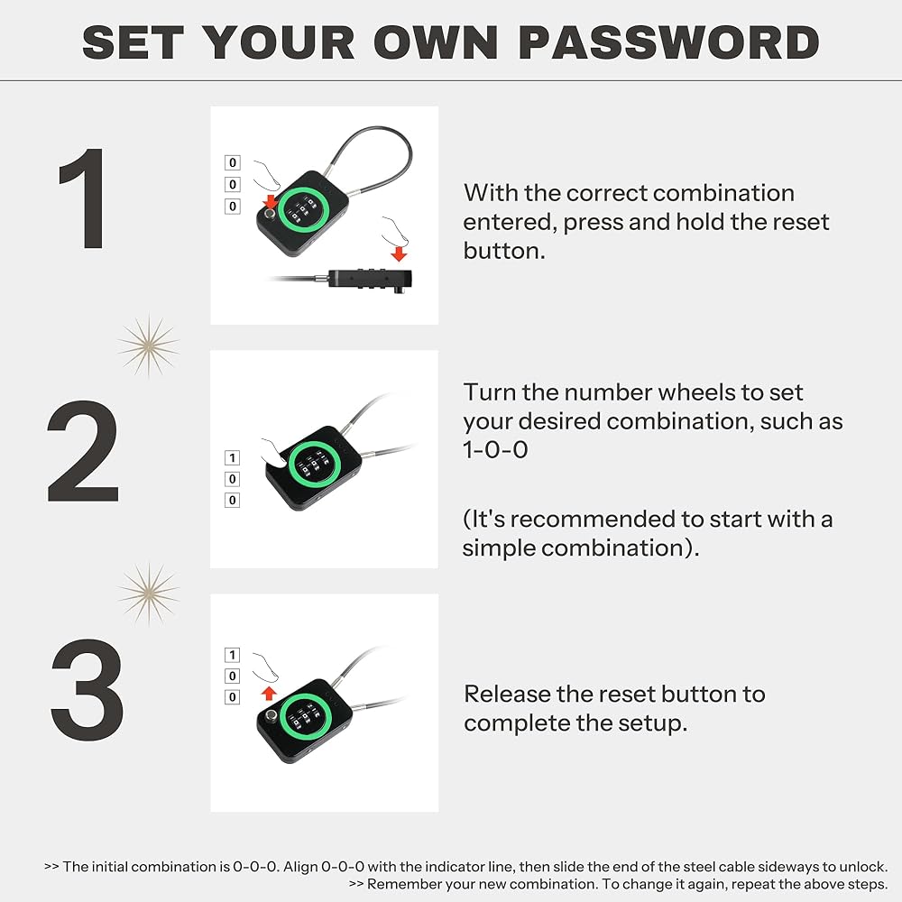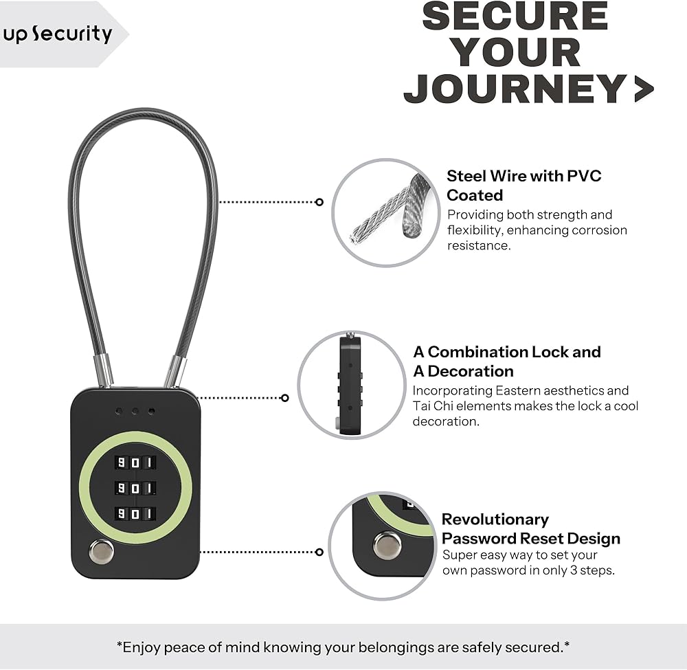 آمن وخالي من القلق. مجهزة بتقنية كلمة المرور المتقدمة المكونة من 3 أرقام، والتي توفر 1000 مجموعة فريدة، مما يجعل من الصعب على اللصوص اختراقها. لا توجد حاجة لمفاتيح، فقط تذكر كلمة المرور الخاصة بك للوصول إليها بسهولة، مما يوفر راحة البال.