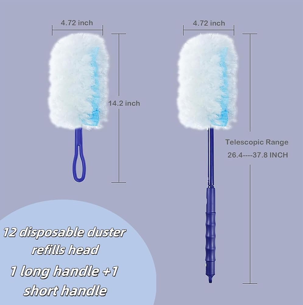 The package including disposable duster with a short handle + 1 long handle +12 duster refills