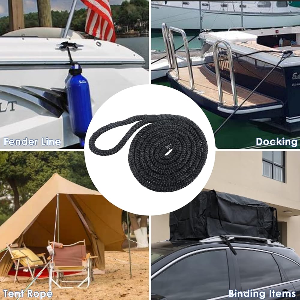 Our boat dock lines double braided does not kink or rotate under heavy loads. When docking your boat it is essential that you limit the movement of your watercraft while absorbing any shocks created by waves.Ideal for securing boats in even in high waves and rough weather. Soft to touch and comfortable to handle.