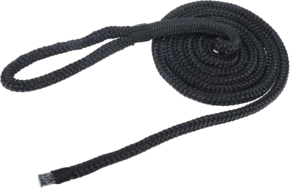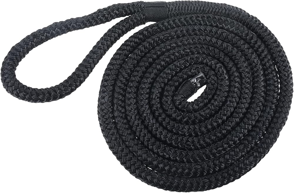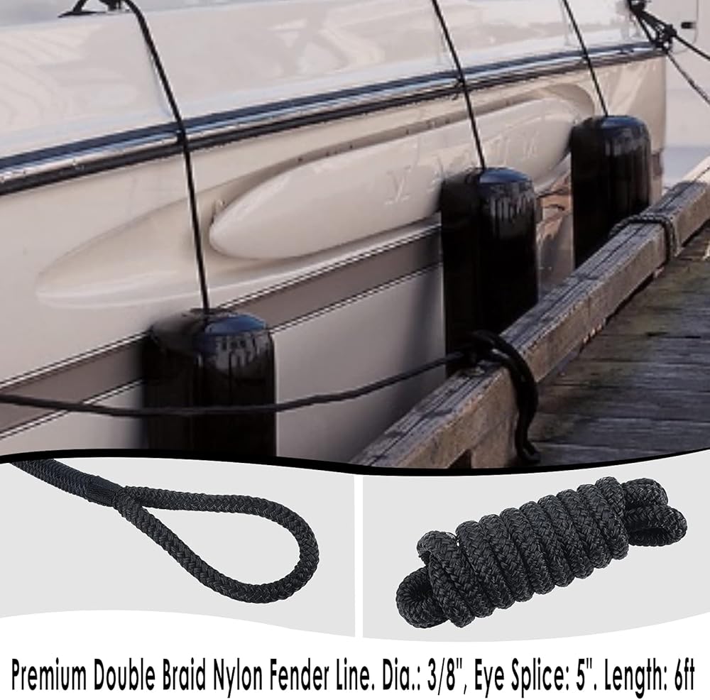 Double Braided DockLine. 100% premium double braided nylon. Professional double braided nylon splice. Yacht whipped at bitter end and splice point. Size : 3/8" * 6ft , Eye Splice: 5", Sold in pairs.Double Braided Dock Line. Professional double braided nylon splice. Heat treated and professionally whipped at the throat and bitter end of the line to ensure long term durability. Size : 3/8" * 6ft , Eye Splice: 5", Sold in pairs.One loose end and one end with an eyelet. perfect length for tie offs or boat bumpers.