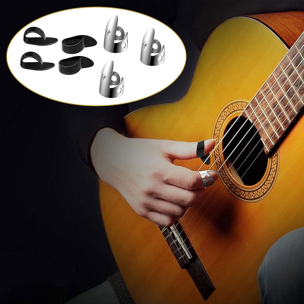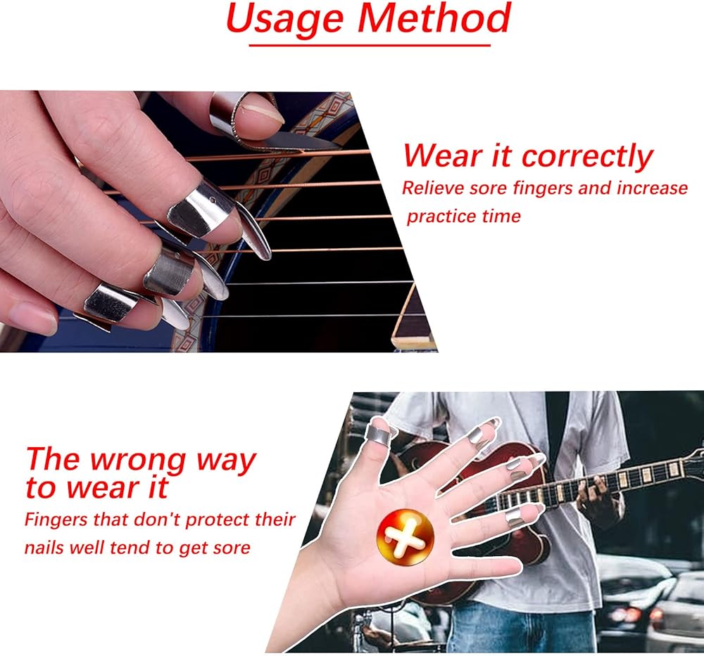 【Sturdy To Use】these banjo finger picks are main made of stainless steel, easy to break, no pungent smell, appropriate bending amplitude and tightness can fit your fingers well,are made of ABS material, which is comfortable to use, providing you with nice protection for your fingers and fingernails.