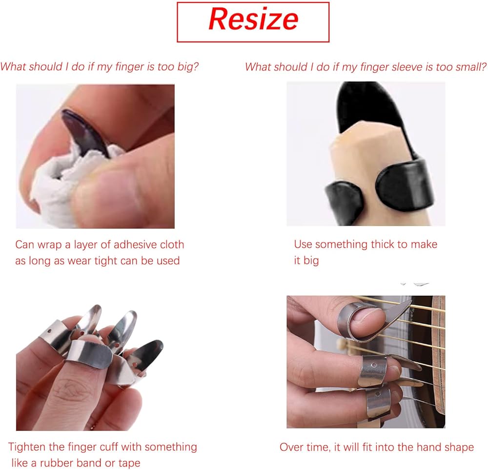 which means that you can adjust the rings according to the size of your fingers so that they can fit your fingers well and bring you a nice experience of playing guitar.