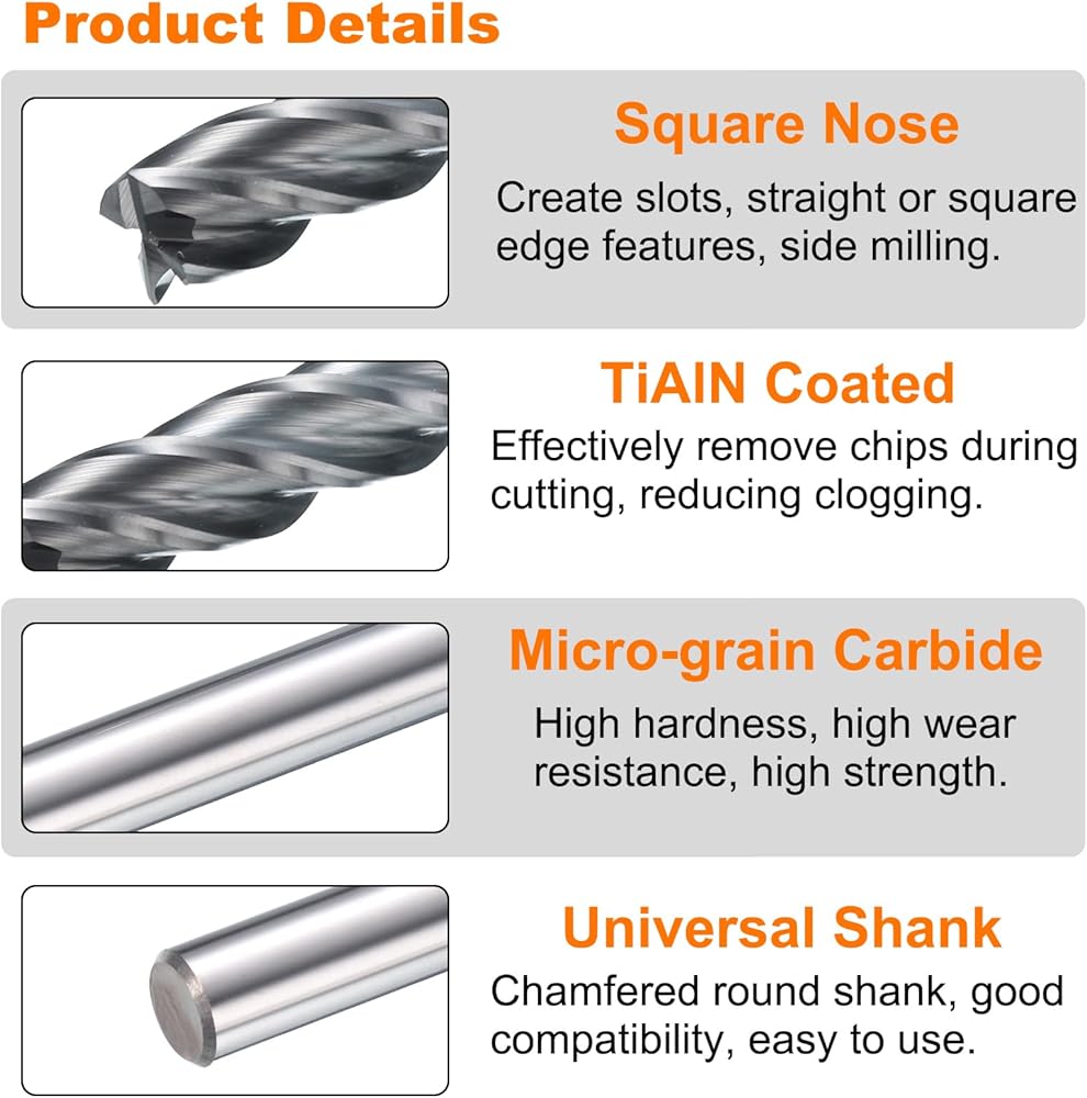 • المواد - Tialn (نيتريد الألومنيوم التيتانيوم) يوفر صلابة عالية ، وزيادة التشحيم ، ومقاومة الحرارة المحسنة. يؤدي أداءً جيدًا في ظل ظروف القطع عالية الحرارة ويوفر مقاومة جيدة للارتداء. تتميز بتات كربيد الحبوب الصغيرة بصلابة عالية ، ومقاومة عالية التآكل ، وقوة عالية ، وصرقة محسّنة ، ومقاومة درجة الحرارة العالية.