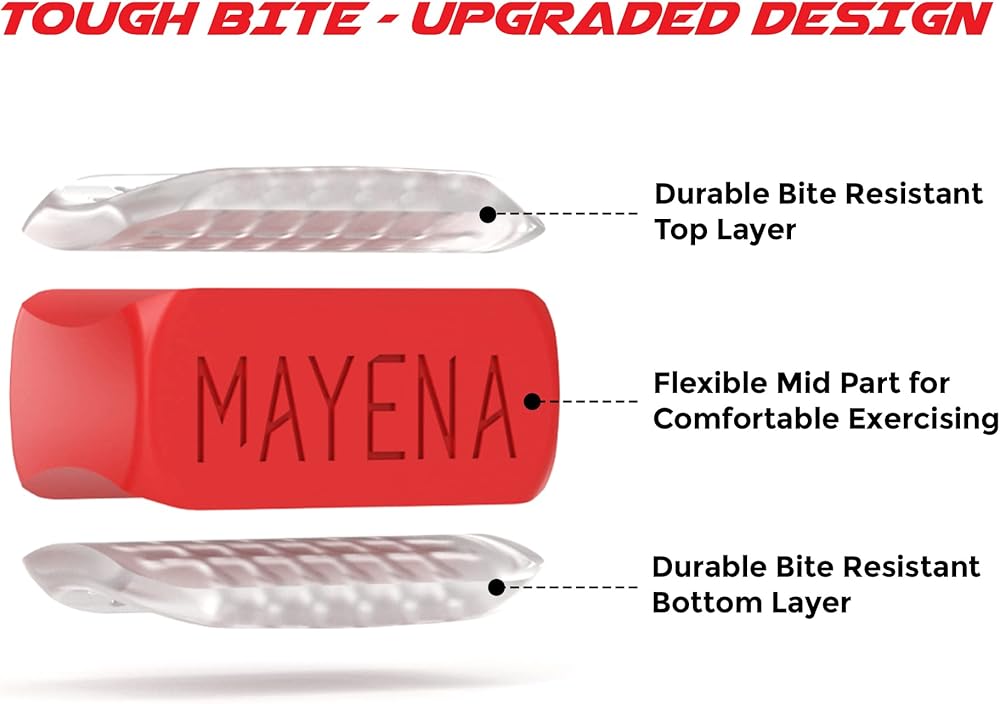 تصميم مطور - تشتمل أجهزة تمرين الفك الجديدة من Mayens Sport على 3 طبقات. تتميز الطبقات العلوية والسفلية بمتانة إضافية ضد اختراق الأسنان، في حين أن الجزء الأوسط مرن ومريح للتمرين الأمثل.