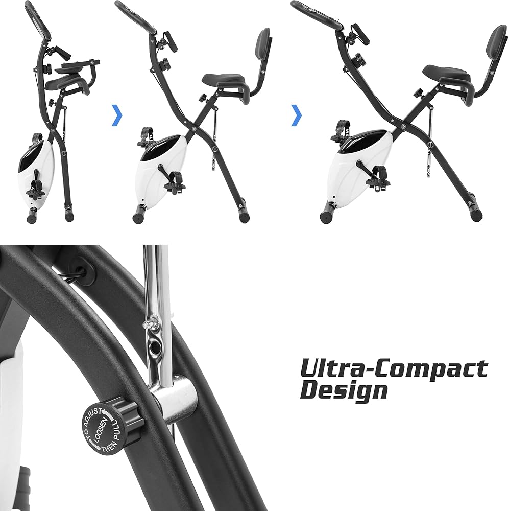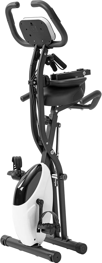 Folding Exercise Bike, Fitness Upright and Recumbent X-Bike with 10-Level Adjustable Resistance, Arm Bands and Backrest