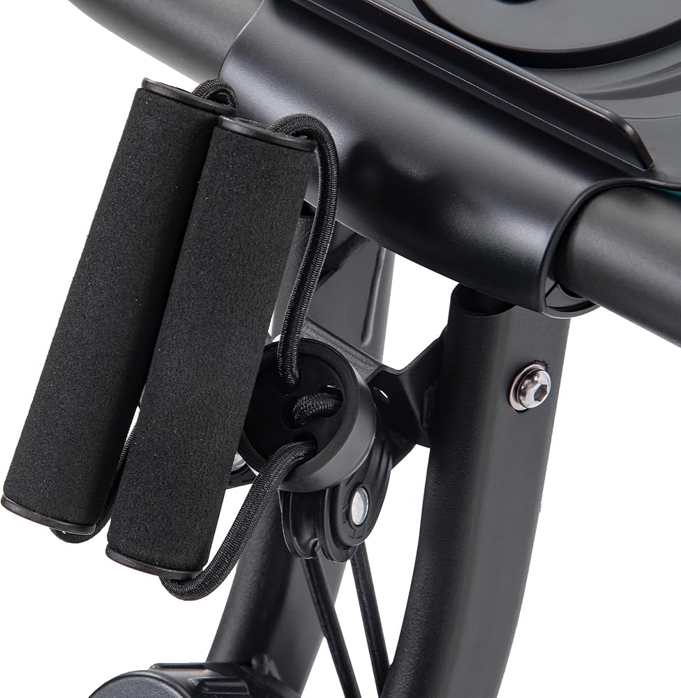 Other Features - Innovative arms bands for upper body strength training. Pedals with straps to keep your feet in place to increase stability. Transport wheels help you move the bike out of the way fast and easy.