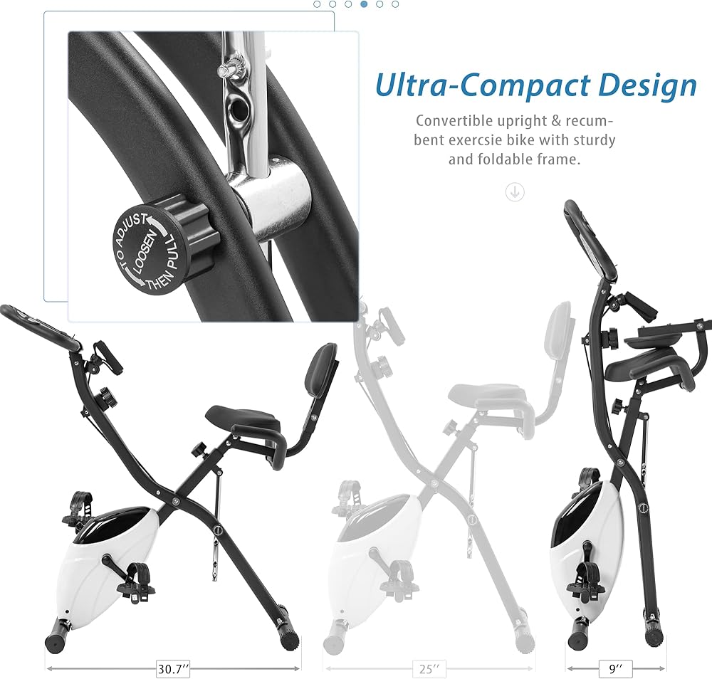 ✔ EASY TO ASSEMBLE:Bike is very easy to be assembled and comes with detailed step-by-step instructions, so please don't worry!Recumbent Size: 30.7'' x 19.7'' x 42.3''(L x W x H); Upright Size: 25'' x 19.7'' x 47.6'' (L x W x H); Folded Size: 9'' x 19.7'' x 54.7'' (L x W x H); Weight Capacity: 350 LBS. Inseam Length: 29''~33'' (inch).