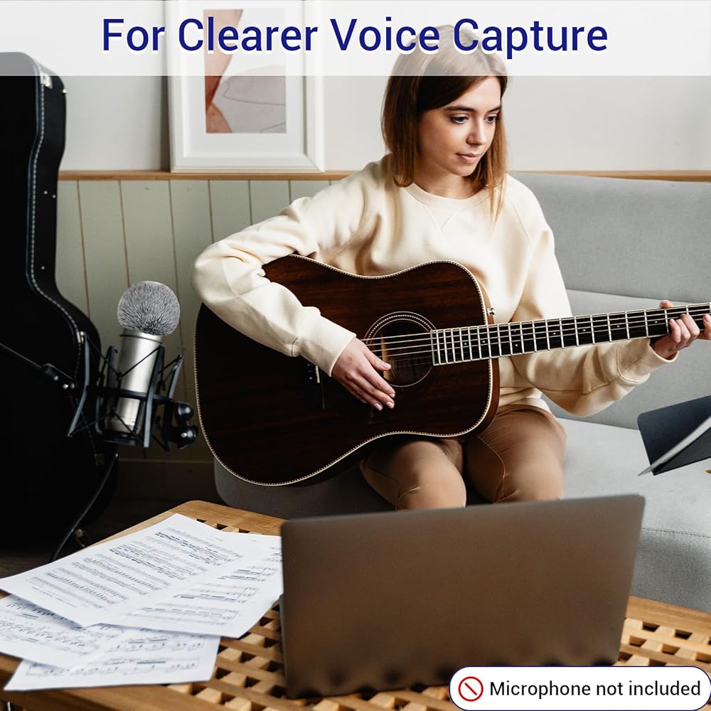 • [إلغاء الضوضاء وتقليل الرياح] - مع الفراء الاصطناعي وحزام الحلقة المرنة، يعد الزجاج الأمامي للميكروفون ذو الفراء مثاليًا لتصفية الضوضاء غير المرغوب فيها للحصول على صوت أكثر وضوحًا.