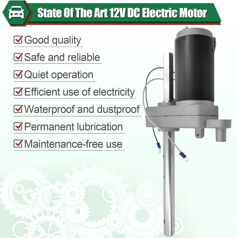 • [جودة عالية]: المجموعة مصنوعة من مواد عالية الجودة. استخدم Motor Of The Art 12VDC Electric Motor.Quiet , الاستخدام الفعال للطاقة الكهربائية - مشحّة بشكل عام لتوفير سنوات من الاستخدام المجاني للصيانة.