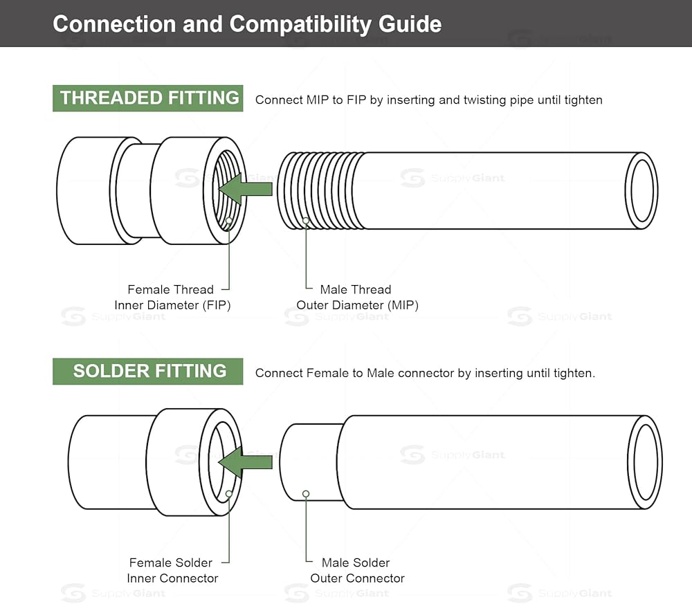 · Use in Variety of Pipes. for Use in combination with Brass, copper, and Iron Pipes.