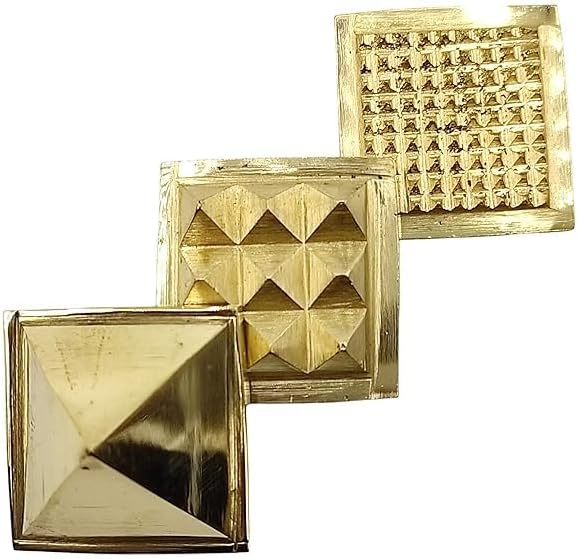Three Layer 3 Stage Vastu Pyramid Size: 4 cm x 4 cm (Small Size), Shape: Square Metal: Mix Metal In Bottom Plate 81 Pyramids, In Middle Plate 9 Pyramids and In Top Single Pyramid (Total 91 Pyramids). It helps to get rid from bad luck & lack in prosperity.