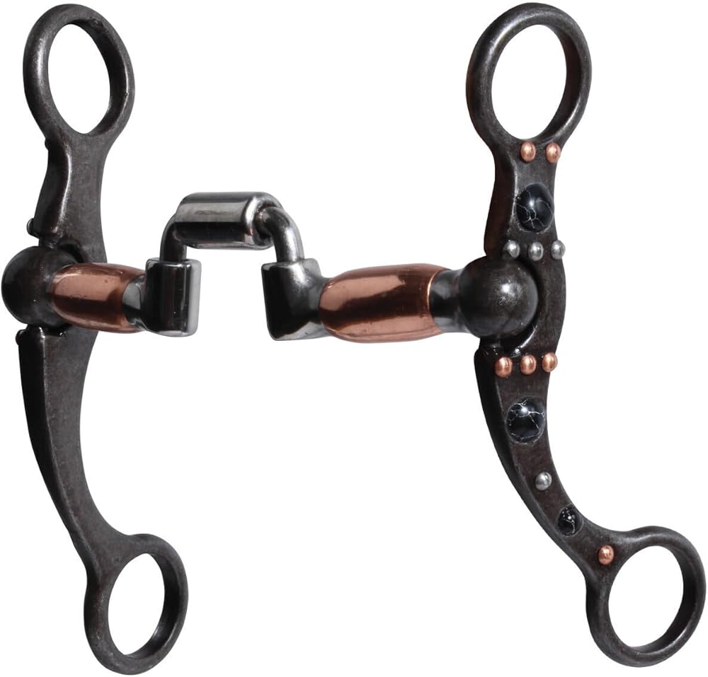 Professionals Choice Bit: This cool bit comes from Professionals Choice's Dot Shank Collection. This weighted cheek allows for more control and added poll pressure while maintaining clean lateral movement. The cheek pieces are polished steel with decorative dot designs. Hinged Port. Mouth: 5 1/4" Cheek: 6". NOTE: These bits will rust when exposed to moisture. This creates a sweet taste in the horse's mouth and promotes salivation. PCB-144
