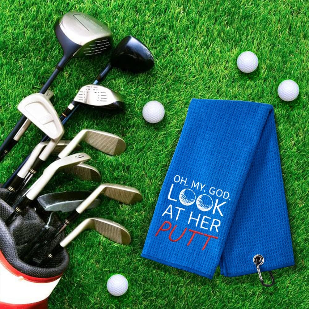 DYJYBMY انظر إلى منشفة الجولف الخاصة بها مع مشبك منشفة كرة الجولف، هدايا جولف مضحكة للرجال والنساء، هدايا عيد الميلاد المضحكة لمحبي الجولف، هدايا التقاعد للأب الأم زميل العمل، هدايا التقدير