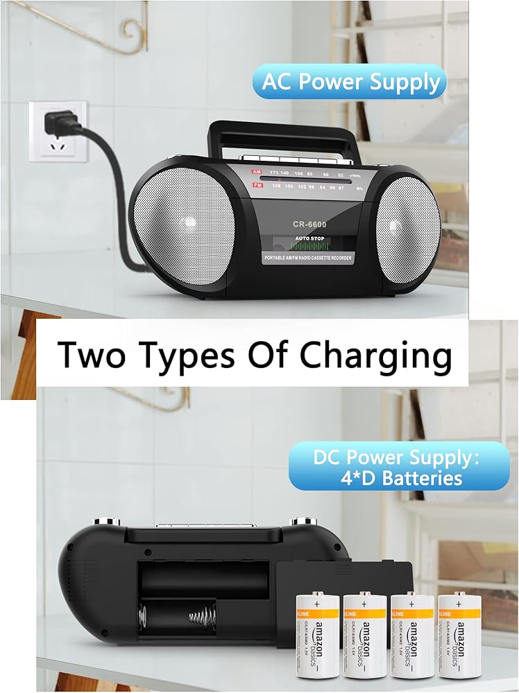 【تيار متردد/4 * D يعمل بالبطارية】يحتوي الصندوق على طريقتين لإمداد الطاقة. يمكنك وضعه في المنزل وتوصيله بتيار متردد للاستمتاع بموسيقى جميلة. مثالية للاستماع إلى الموسيقى الشريطية الخاصة بك في الحفلات والطهي والأكل. بالطبع، يمكنك أيضًا اختيار وضعها في بطاريات 4 D، حتى تتمكن من حملها بسهولة في الهواء الطلق. مثالية للبستنة وصيد الأسماك والتجول في الحديقة.