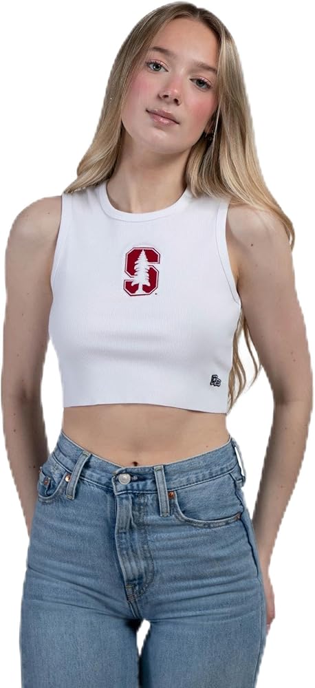 قمصان Hype & Vice للنساء - قميص جامعة ستانفورد للنساء، قميص قصير بدون أكمام، قمصان جامعية لأيام اللعب - أبيض، X-Small