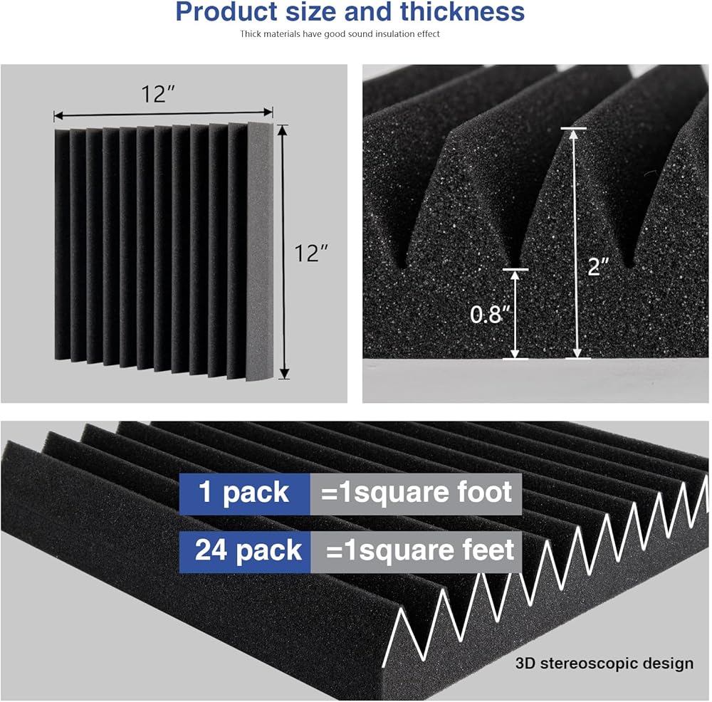24 حزمة الألواح الرغوية الصوتية 12 "× 12" × 2 "أسافين الرغوة الاستوديو مع ألواح رغوة الجدار المقاومة للصوت لذات ذات كثافة عالية تتوسع بسرعة للاستوديو الأسود المنزلي