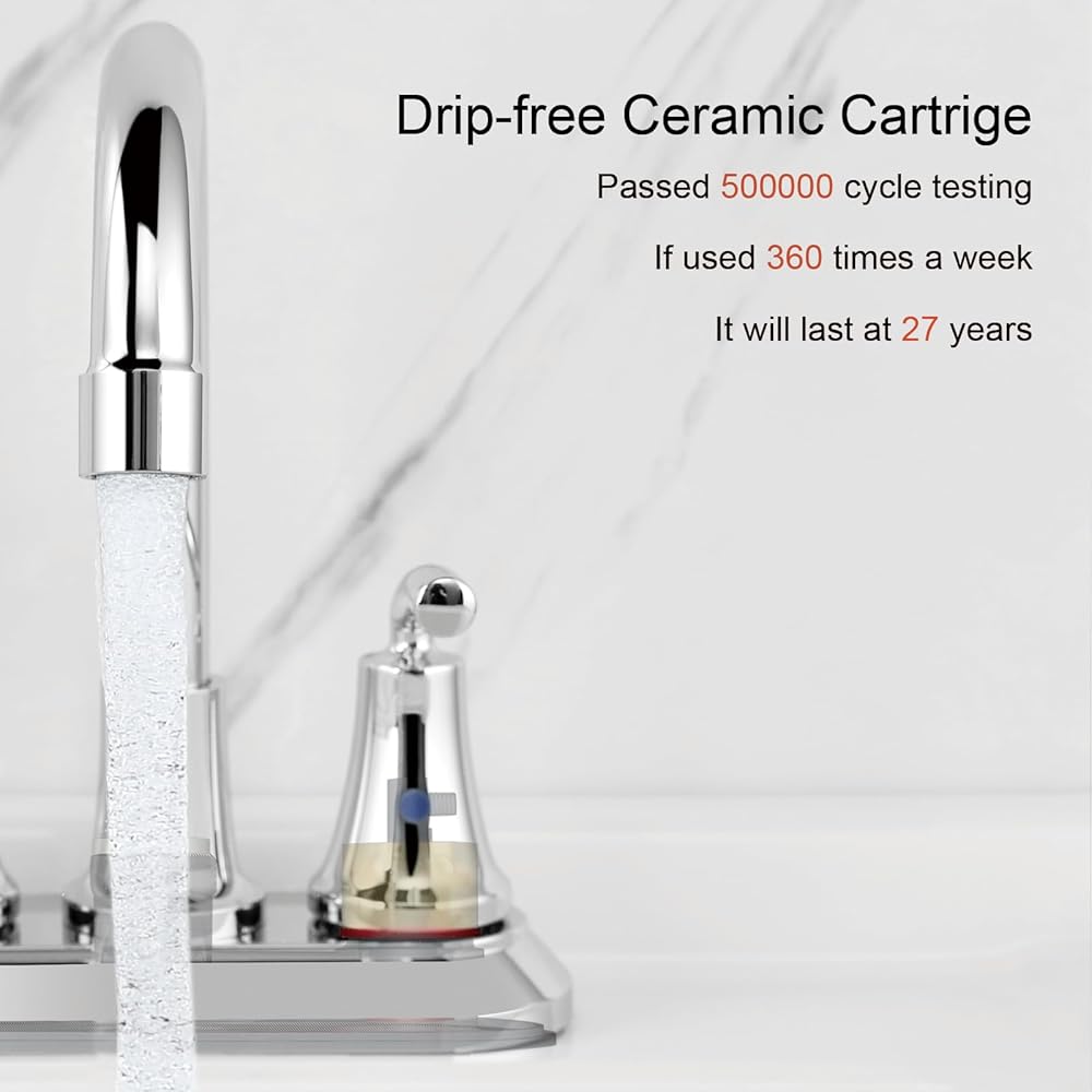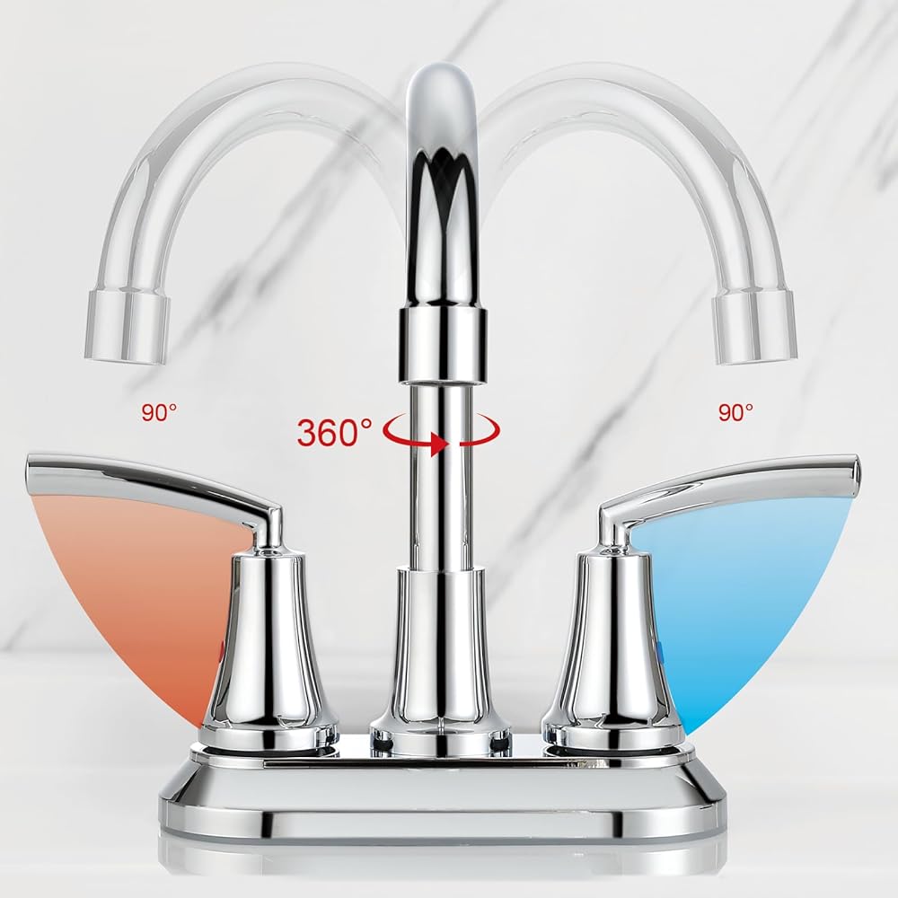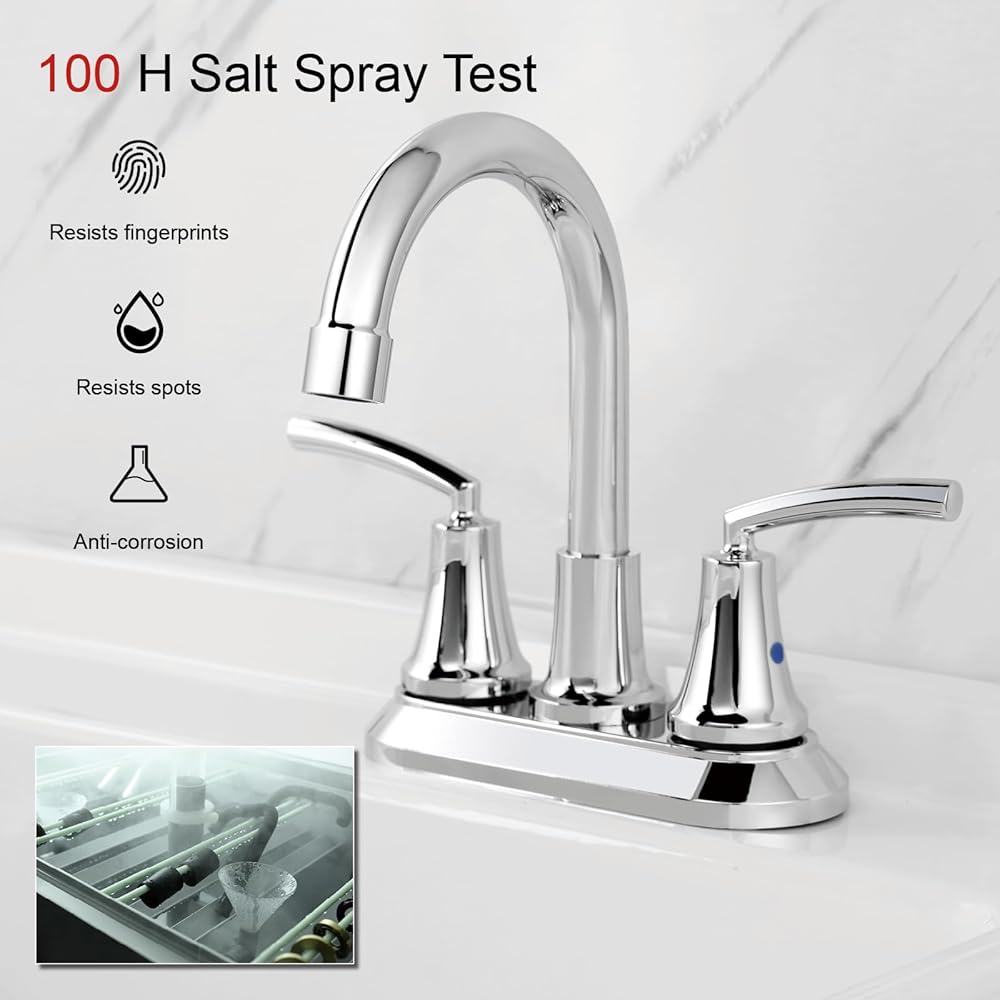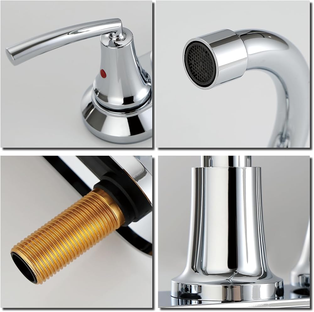🎾 🎾【المواد】🎾 🎾 🎾 الصنبور المركزي ذو المقبضين لغرور الحوض مصنوع من الفولاذ المقاوم للصدأ الخالي من الرصاص والنحاس والسبائك والسيراميك والبلاستيك. مع التكنولوجيا الهيكلية المتقدمة التي تعمل بشكل جيد من حيث مقاومة التآكل والخدش، ليس من السهل ترك بصمات الأصابع. مناسب لمعايير NSF 61 الخالية من الرصاص ومتوافق مع ADA.