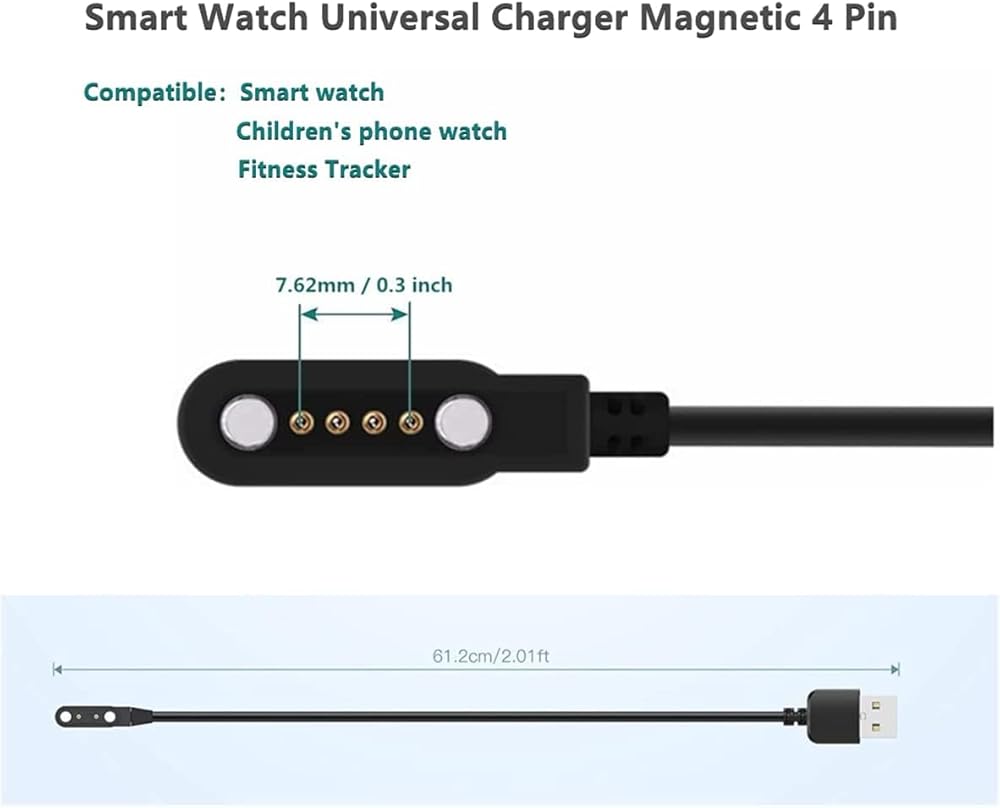 كيبل شحن للساعة الذكية من مييكيو بي، كيبل شحن USB مغناطيسي شامل للساعة الذكية/متعقب اللياقة البدنية 4 دبابيس، مسافة دبوس الاتصال 7.62 ملم