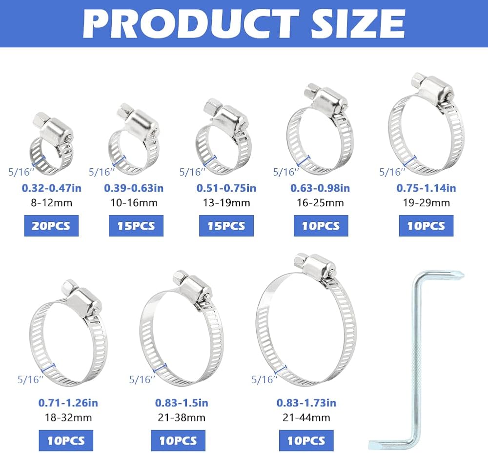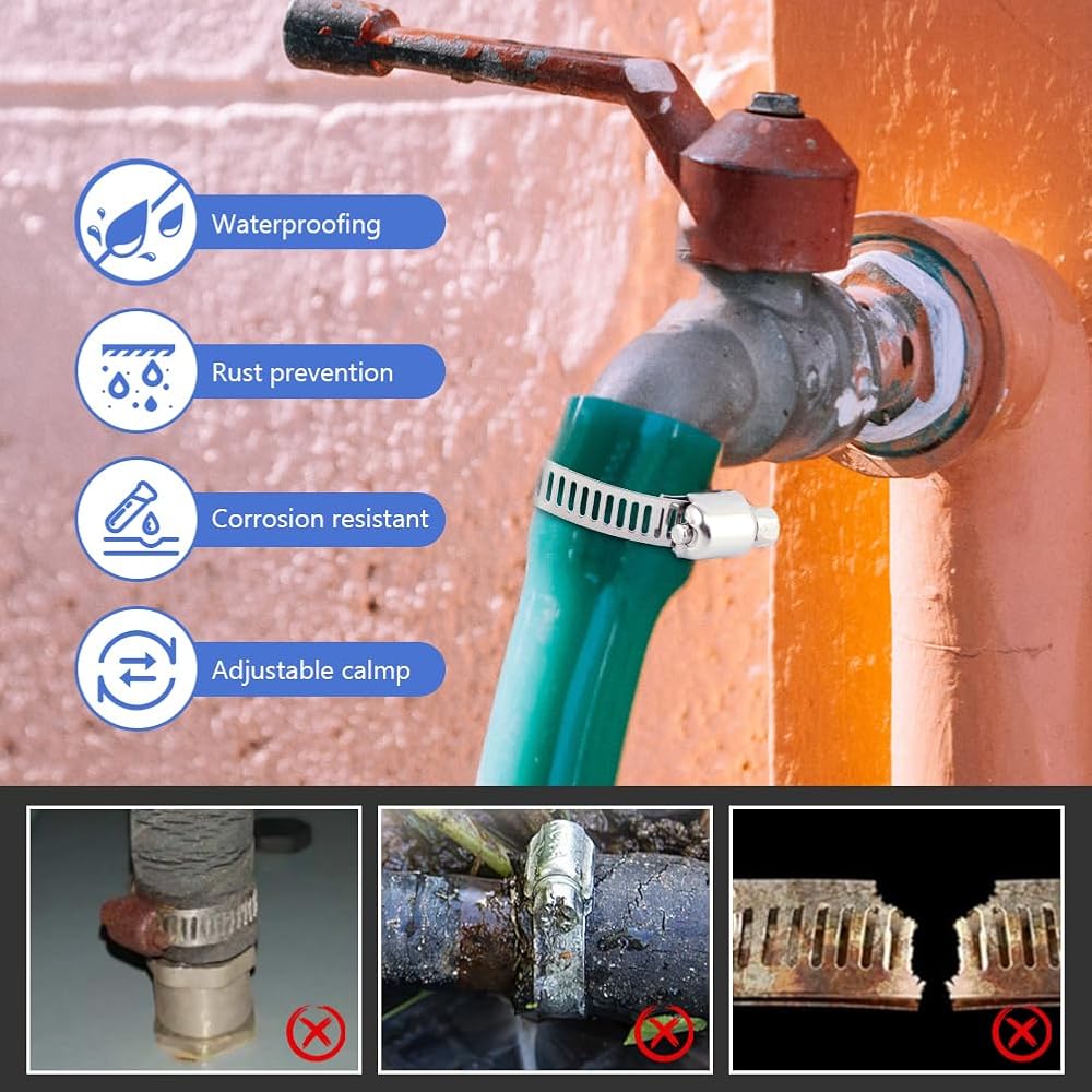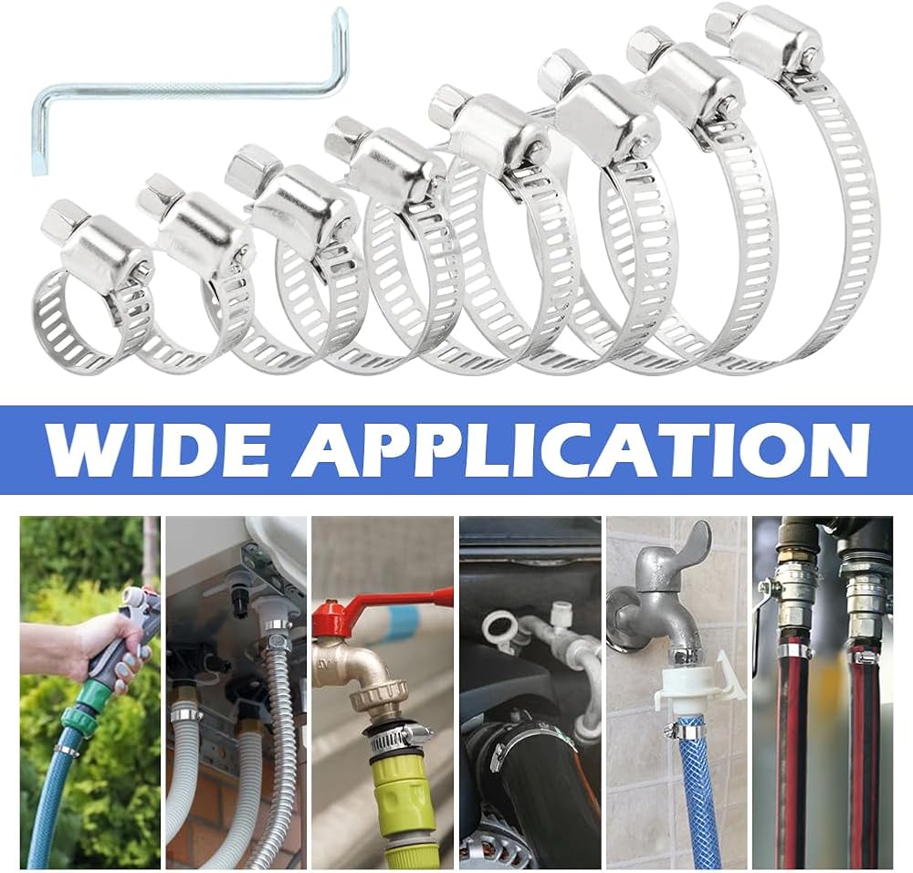 【LEAKAGE PREVENTION】These stainless steel hose clamps are installed on the joints of the hose or pipes to preven-t fluid leakage, saving expensive repair time and money. You don't need to replace them frequently.