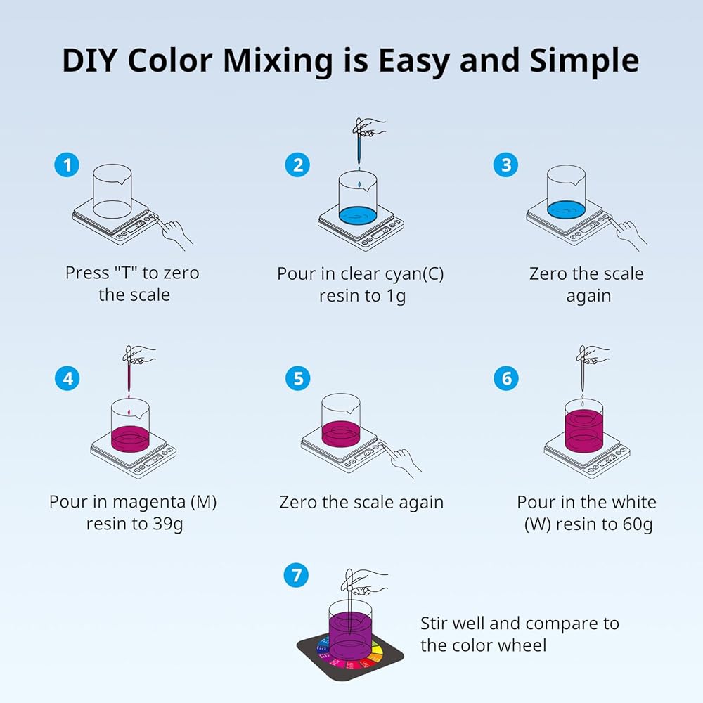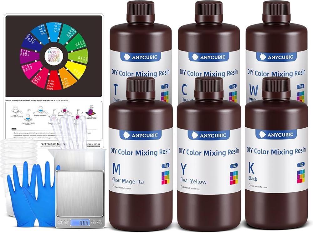 Anycubic DIY Color Mixing Resin 3D Printer Resin for LCD 3D Printing ، بما في ذلك الراتنجات ثلاثية الأبعاد ، قطارة ، دورق ، أكواب بلاستيكية يمكن التخلص منها ، قفازات النتريل ، المقياس الإلكتروني (بدون بطارية)
