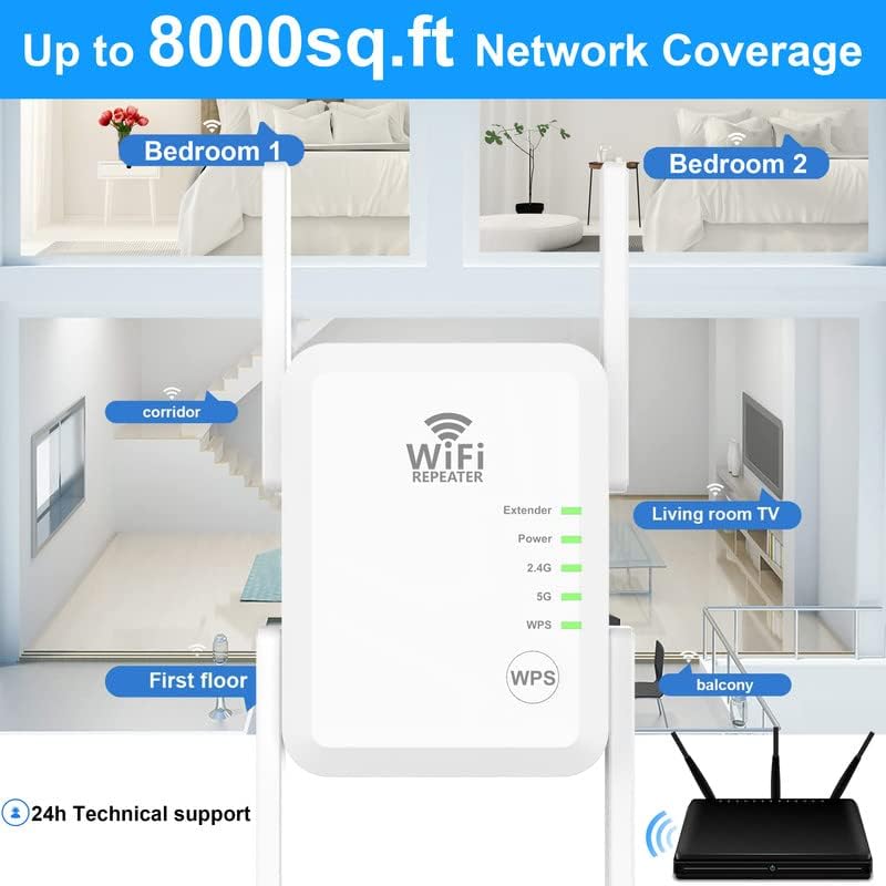 • ✅【Say Good Bye to WIFI Dead Zone】WiFi range extender Coverage up to 8000sq.ft with advanced central processing unit and powerful new-generation chips can better extend wireless signals to hard-to-reach areas.