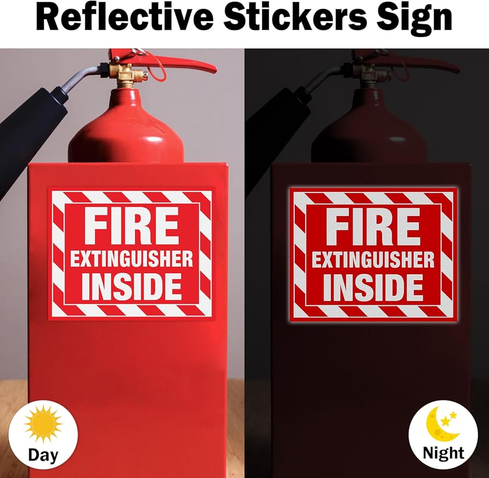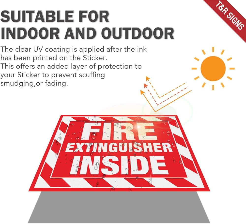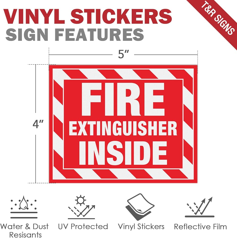 مطفأة حريق T&R داخل ملصقات الإشارة - 10 حزمة - 5 "× 4" عاكسة فينيل ذاتي ، مقاومة للأشعة فوق البنفسجية ، مقاومة للماء ، تتلاشى ومقاومة للخدش ، مناسبة للمركبات الداخلية والخارجية في الهواء الطلق