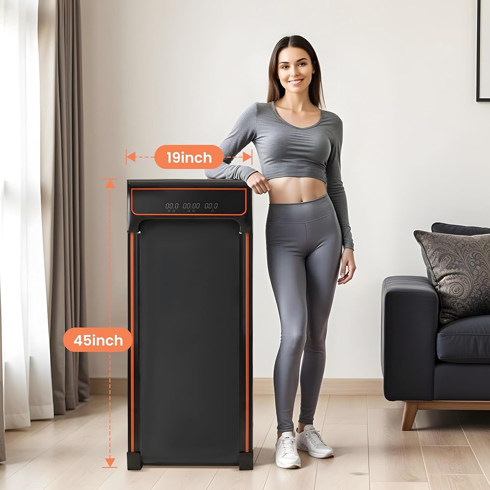 Easy to move & space saving: With its lightweight yet sturdy design, this under desk treadmill is easy to move effortlessly with built-in front wheels. Easy to store under sofas, corner, desk or bed, saving space in home for personal use&family enjoyment