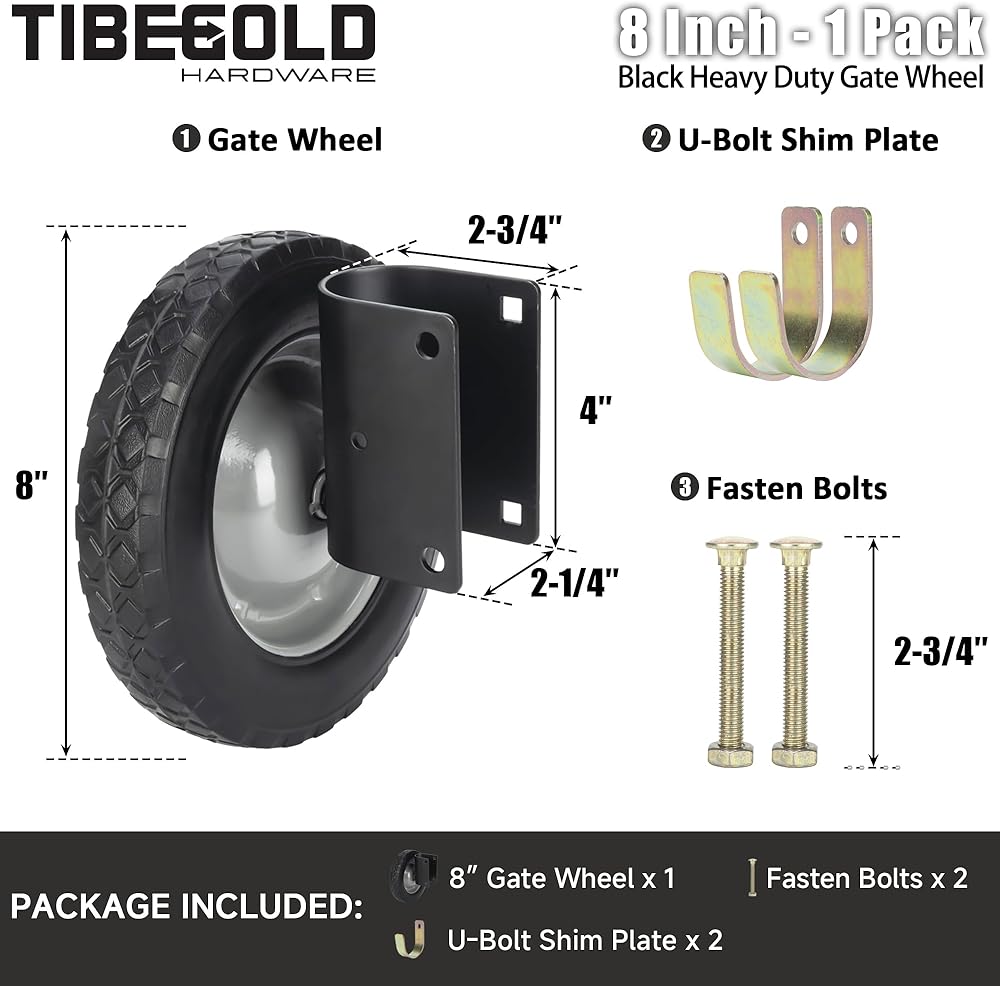 Durable 8 Inch Gate Wheel: Expertly crafted from hard tire rubber and solid steel, TIBEGOLD gate wheels promise exceptional strength and reliability. Protected by a premium black powder coating and galvanization, they offer superior resistance to corrosion, ensuring enduring durability. Specifically engineered for outdoor environments, these gate casters withstand the test of time and the elements with ease.