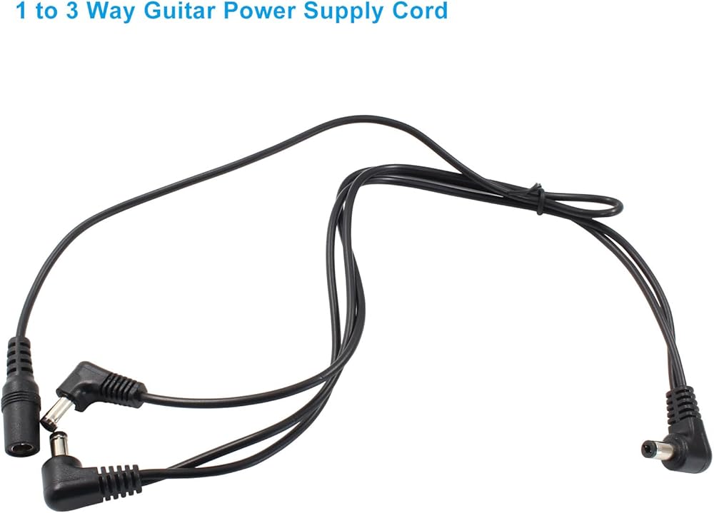 Piutouyar 1 to 3 Way Guitar Effect Pedal Power Cable, Black Guitar Pedal Daisy Chain Cable Power Supply Cord with Bend Head for DC 9V Adapter Plug