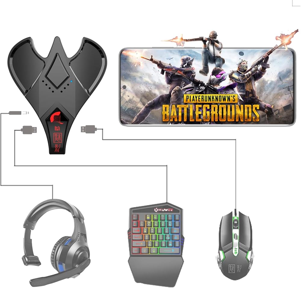 【مع مقبس سماعة رأس 3.5 مم】محول ماوس لوحة مفاتيح الألعاب المحمول ArVin PUBG مع مقبس سماعة رأس 3.5 مم، مما يسمح لك بالتمييز بسهولة عن خطوات العدو في اللعبة وهزيمة العدو بسرعة. تمنحك تجربة لعب غامرة.