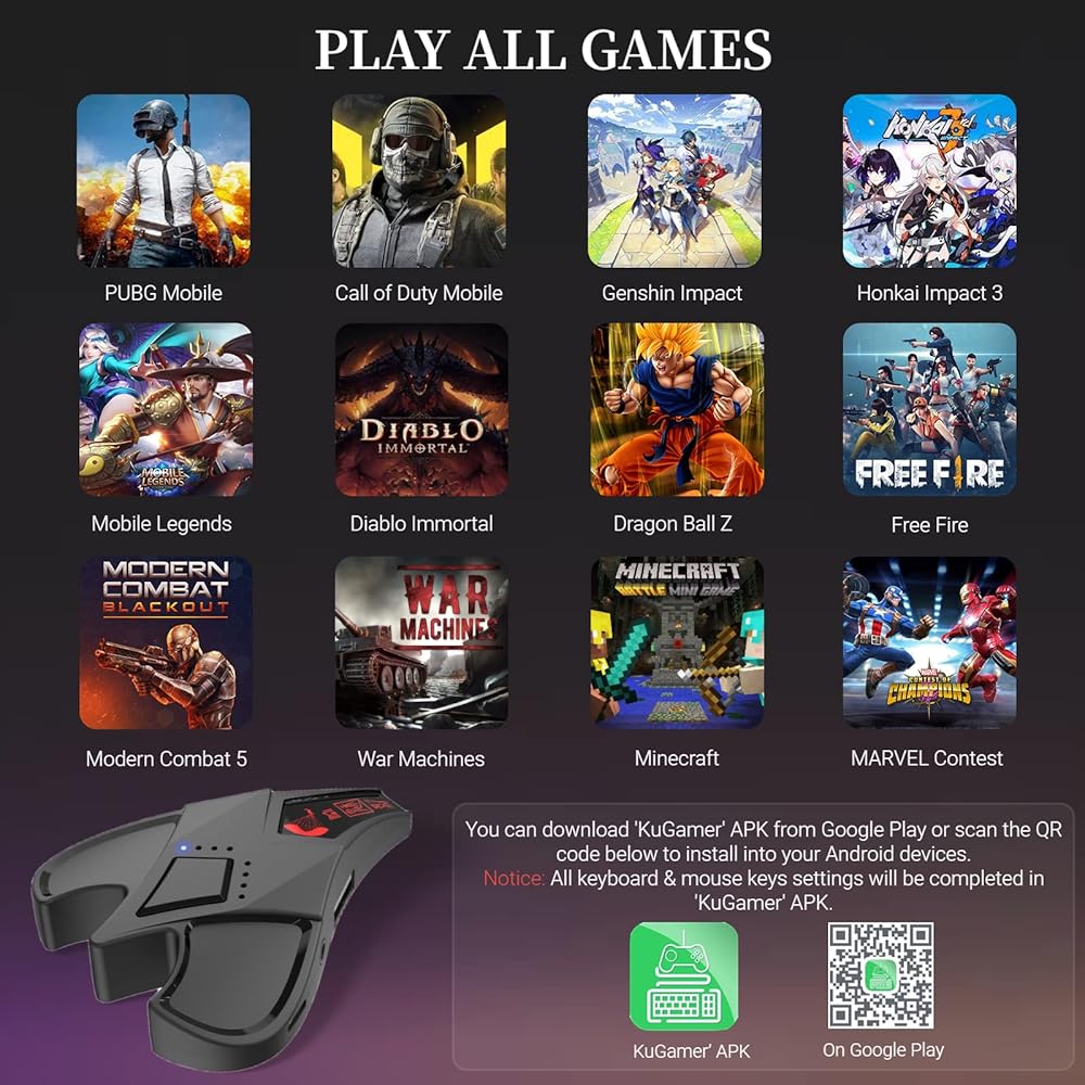 【تشغيل جميع الألعاب و8 ألعاب وظيفة ذاكرة المفاتيح المخصصة】لا توجد قيود على محول لوحة مفاتيح الماوس المحمول الخاص بنا، ما عليك سوى تنزيل APK "KuGamer"، وتخصيص الأزرار وتشغيل جميع ألعابك المفضلة في التطبيق. مثل PUBG Mobile وCall of Duty Mobile وHonkai Impact 3 وFree Fire وMobile Legends وGenshin Impact وDiablo Immortal ومعظم ألعاب FPS. يمكنك تخزين مفاتيح مخصصة لـ 8 ألعاب ولا تحتاج إلى تعيين تعيين المفاتيح مرة أخرى عندما ستلعب الألعاب في المرة القادمة، وهو أمر مريح للغاية.