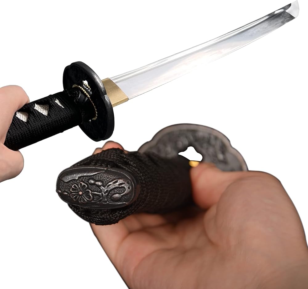 Mini katana sword real Tanto Japanese small samurai short sword high quality carbon steel Full Tang hand forged sharp 16.53 inches handguard engraved black swallow