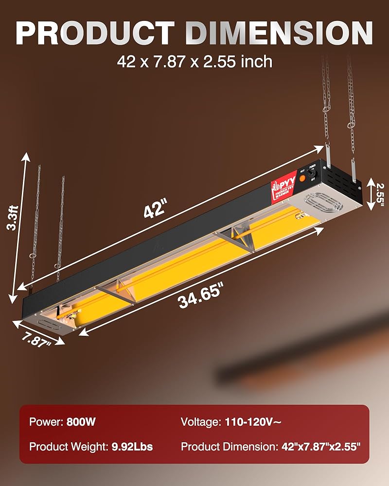 مادة متينة: مصنوع من الفولاذ المقاوم للصدأ السميك، مصباح تسخين الطعام متين وسهل التنظيف. يتضمن التصميم فتحات تهوية على كلا الجانبين لمنع ارتفاع درجة الحرارة، مما يطيل عمر المصباح. الأبعاد: 42 بوصة × 7.9 بوصة × 2.5 بوصة/106.7 × 20 × 6.5 سم؛ الوزن: 10 رطل/4.5 كجم؛ الطاقة: 800 وات؛ الجهد الكهربي: 110-120 فولت ~/60 هرتز