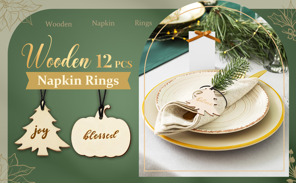 شكل شجرة عيد الميلاد الرائع: حلقات منديل الشكر هذه في أنماط شجرة عيد الميلاد ، محفورة ب 6 كلمات مختلفة ، وهي [الحب] ، [الفرح] ، [السلام] ، وهكذا ، هناك قطعتان من كل نمط ، مليئة بجو عيد الميلاد