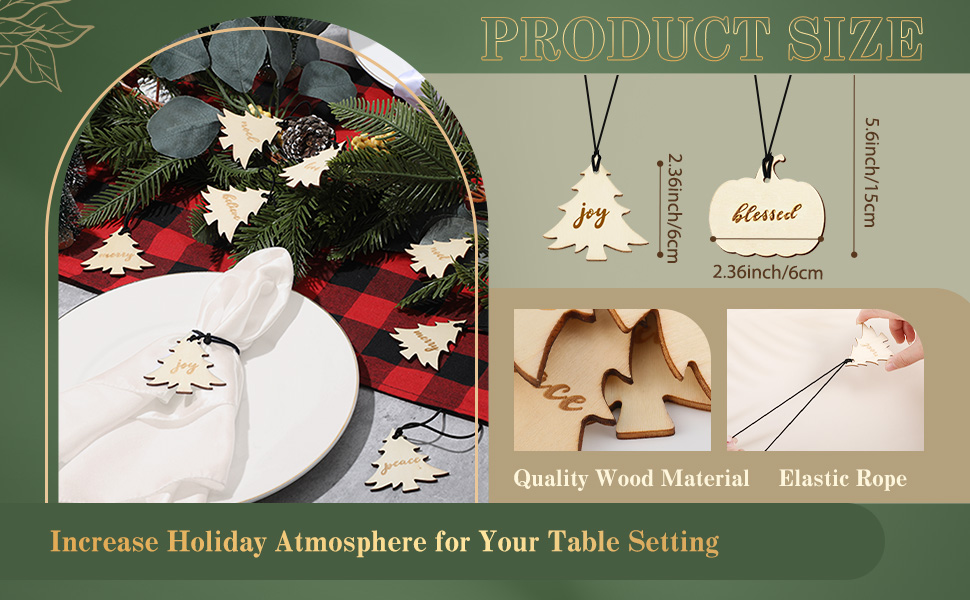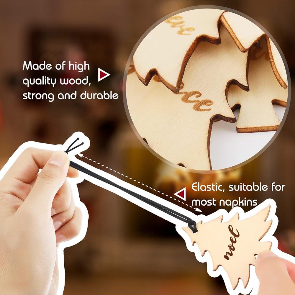 مجموعة من 12: ستتلقى 12 قطعة من منديل شجرة الأشجار الخشبية ، كل منها يقيس تقريبا. 6 × 6.1 سم/ 2.36 × 2.4 بوصة ؛ تم تجهيز كل منها بحبل مرن ، مما يسمح له بالمرور عبر منديل القماش بسهولة