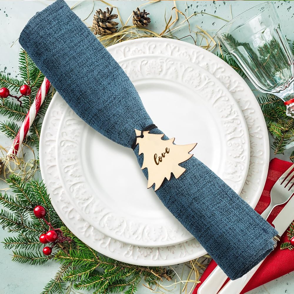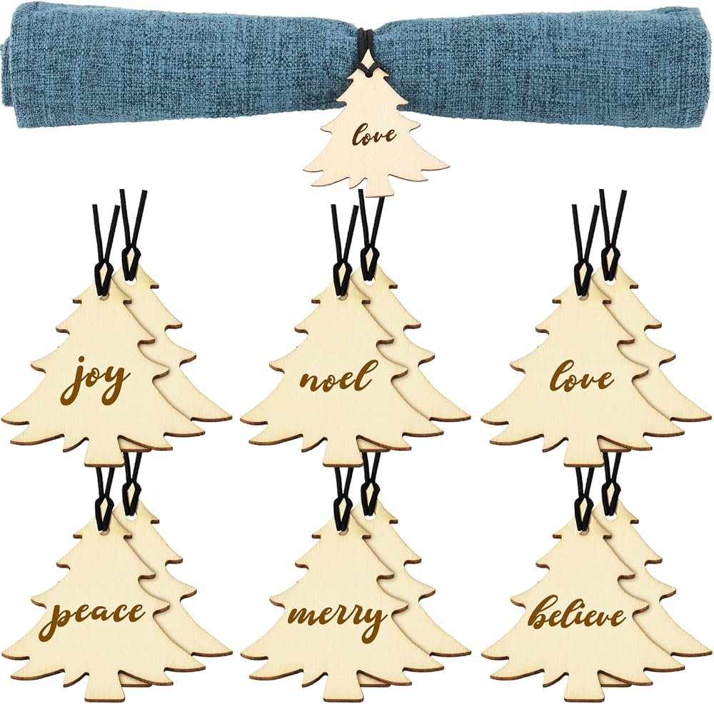 12 قطعة من حلقات منديل عيد الميلاد، حلقات منديل شجرة عيد الميلاد، حلقات منديل خشبية للعطلات، حامل مناديل ريفي، مشبك دائري لتزيين طاولة الطعام في عيد الميلاد (شجرة عيد الميلاد)