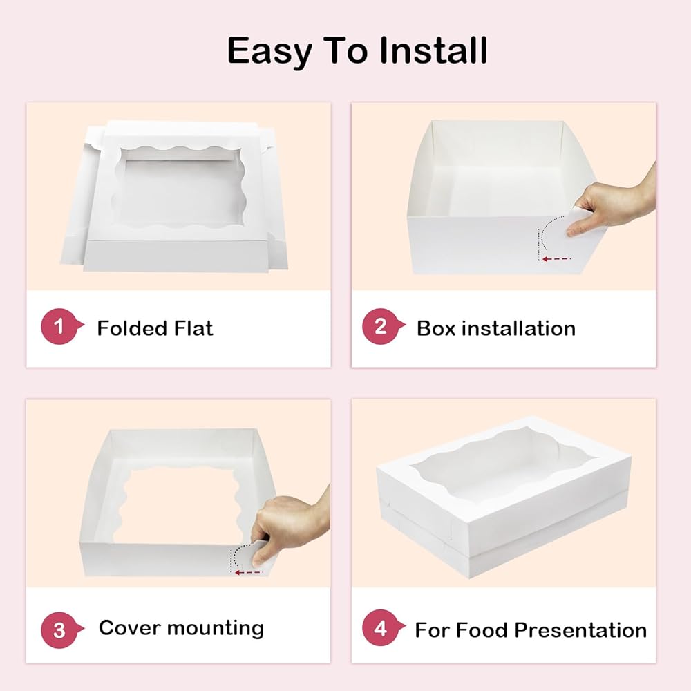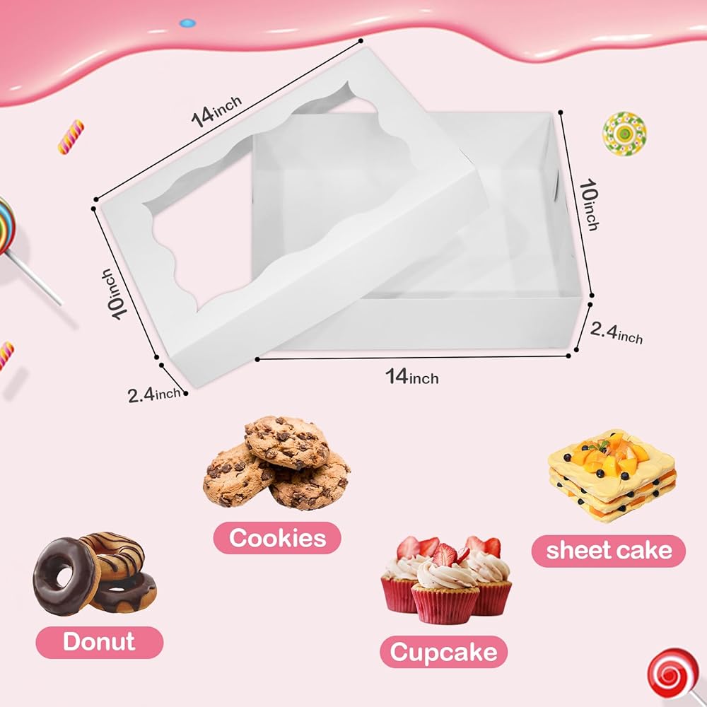 【صندوق كعكة مع نافذة】 يأتي مع 12 قطعة من صناديق الكيك البيضاء بقياس 14 × 10 × 4 بوصة. يمكن أن تحمل ورقة كعكة 14 بوصة. حجم المستطيل الكبير مناسب لكعك 1/4 ورقة ، وكعك الملك ، بالإضافة إلى المخابز الأخرى ، المعجنات ، الفطائر ، الحلويات ، الفراولة الشوكولاتة ، المعجنات ، الكعك الصغير ، الكعك ، الكعك ، المعكرونات ، أو أي سلع مخبوزة أخرى.
