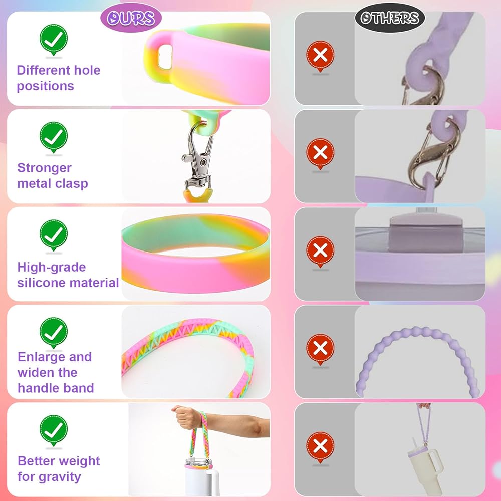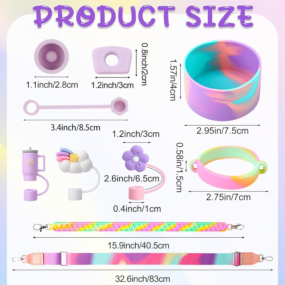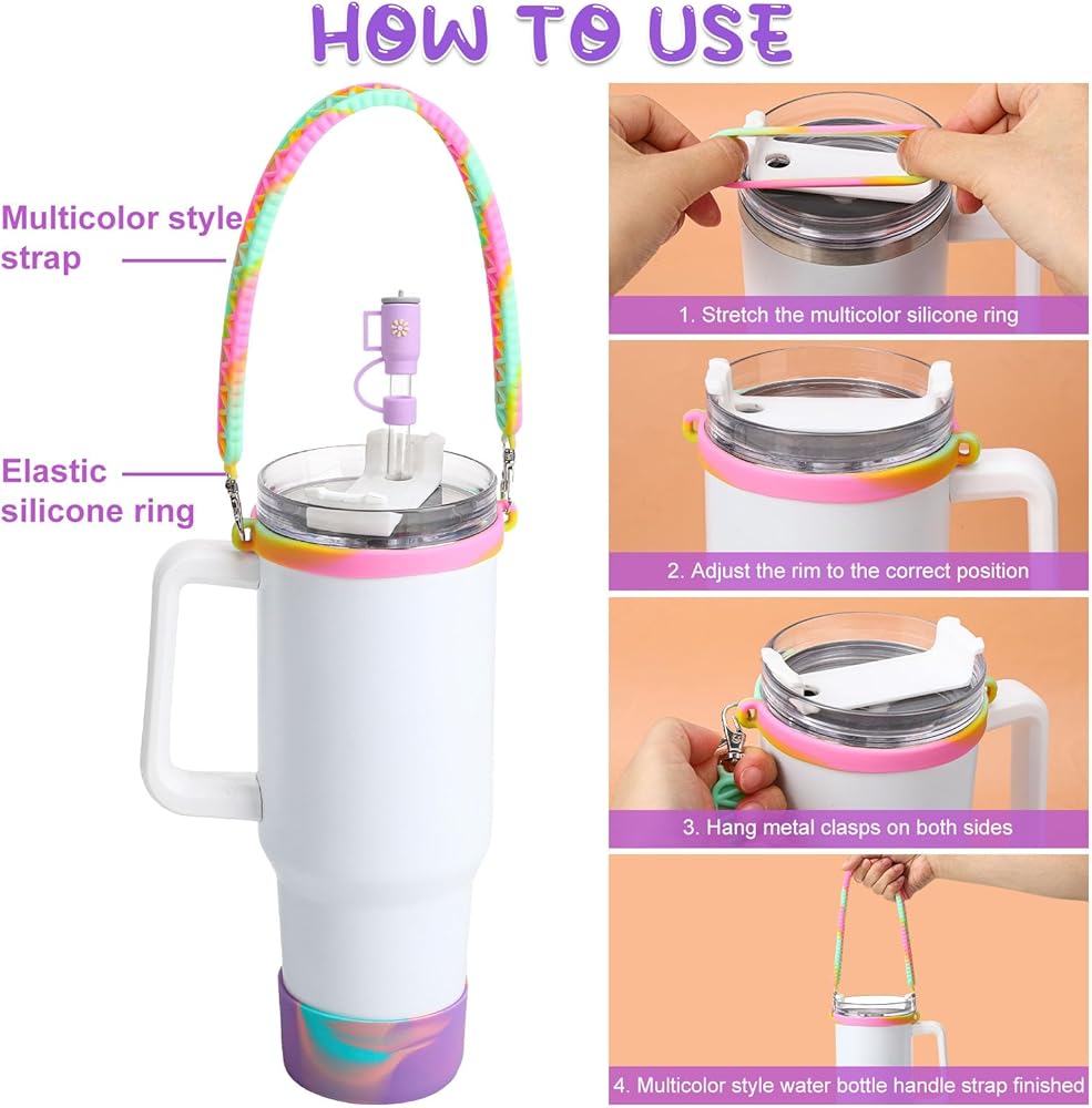 • مجموعة كافية: مجموعة ملحقات كأس ستانلي الملونة تشمل أحزمة مقبض زجاجة ماء 2 أجهزة كمبيوتر شخصي ، 1 PCS سدادة مضادة للتجويف ، حذاء سيليكون 1 PC ، 3 أجزاء من أغطية سليكون سليكون لكأس ستانلي