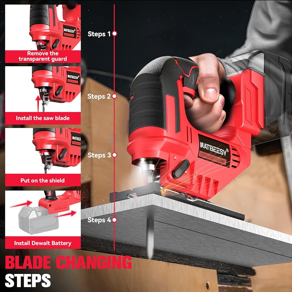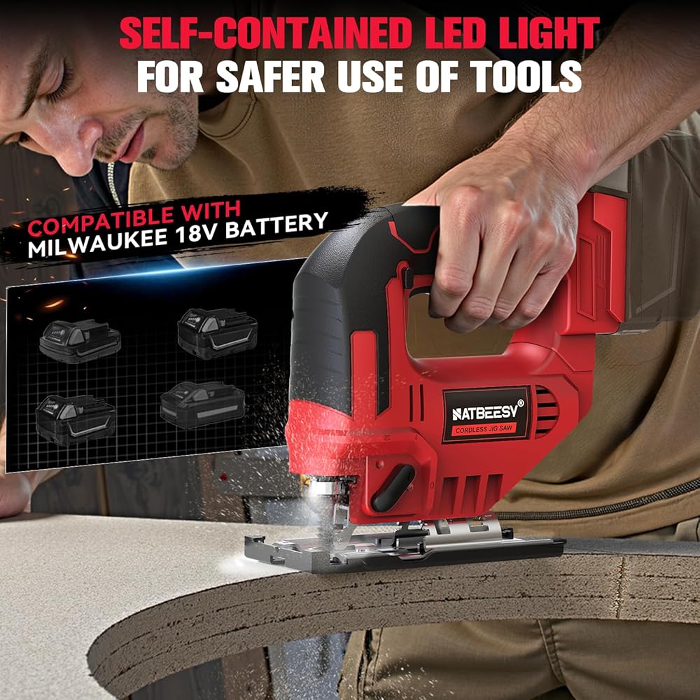 • تصميم آمن: يضيء ضوء LED المدمج منطقة عملك لمزيد من الدقة. يستخدم منشار الرقصة زر قفل الأمان للحماية من خطر الإصابة بالإهمال دون التشغيل. تلتزم NATBEESY بالتأكد من سلامتك عند استخدامك لمنتجاتنا.