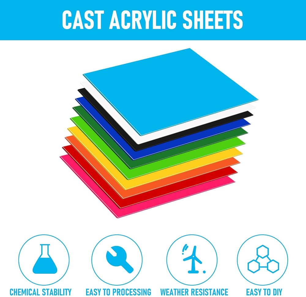 " QTLCOHD 10 Pcs Acrylic Sheet 1/8 Thick 8 x 8 Inch Opaque Colored Cast Acrylic Sheet for Laser Cutting and Engraving Materials, UV Printed Signs, Crafts and DIY Projects