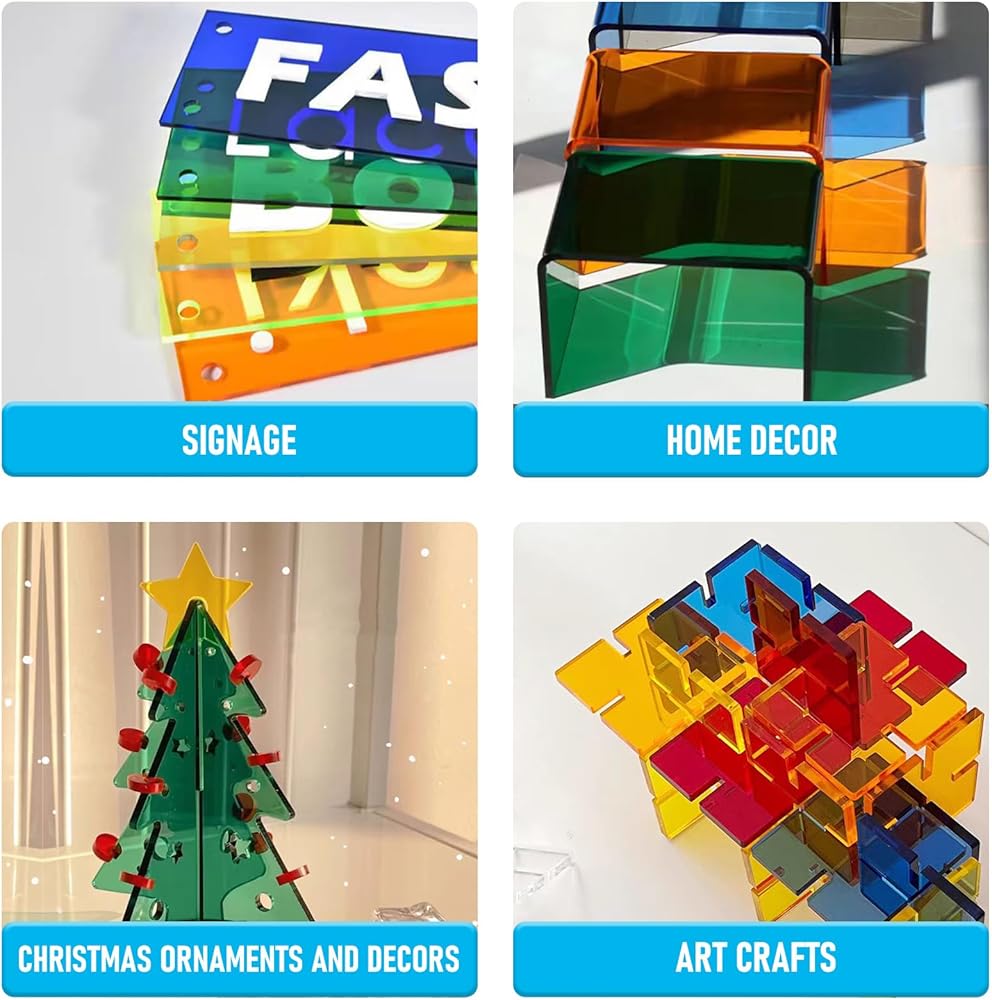 - Our true opaque glossy acrylic sheets are versatile and can be utilized for various DIY and professional projects. These plastic sheets are perfect for creating laser-engraved signage, display cases, desktop protectors, home decor, Thanksgiving decorations, Christmas ornaments and decor, as well as other festival ornaments and art crafts.