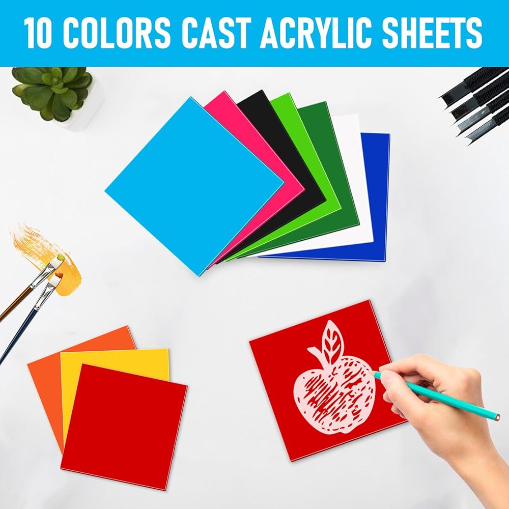 • You Will Get: 10 sheets of 10 opaque acrylic sheets, size 7.87"x7.87", thickness 1/8". Available in 10 colors, included red, orange, yellow, and apple green, dark green, sky blue, dark blue, rose red, white, black