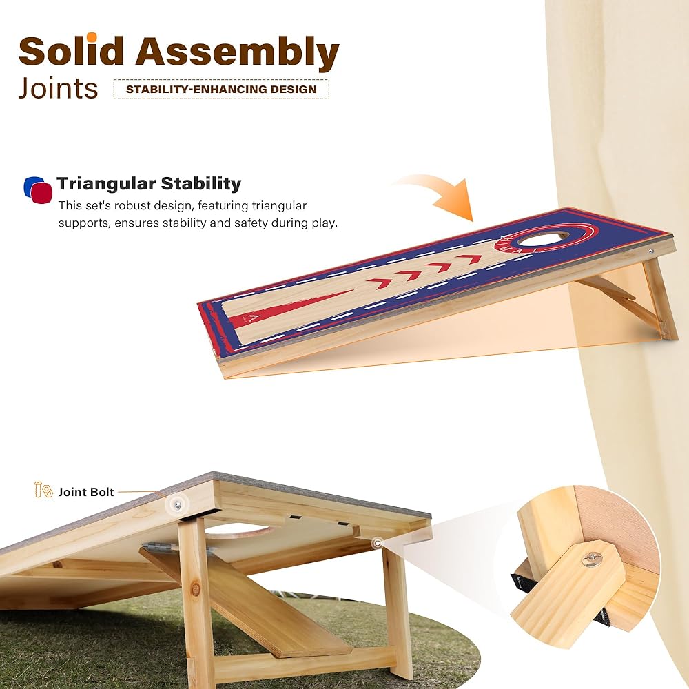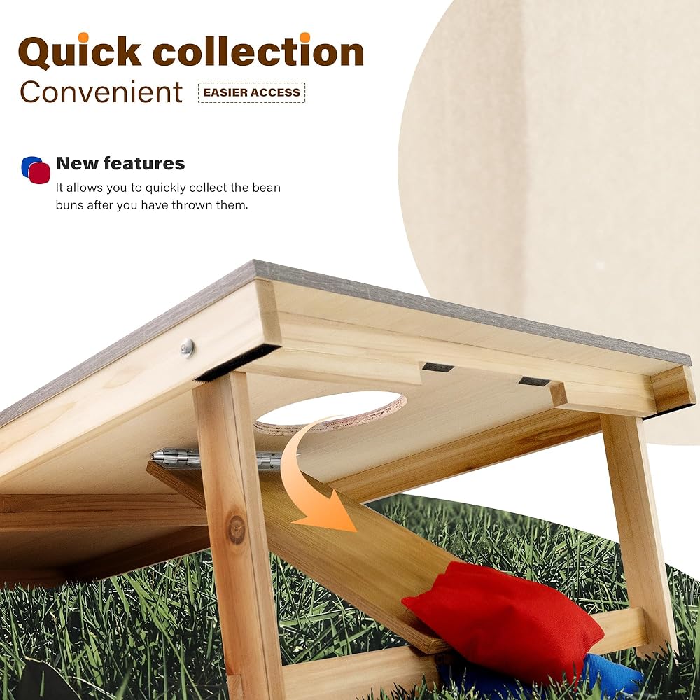 【Complete Play Set】The cornhole set is game-day ready with two cornhole boards, eight bean bags. It's perfect for players seeking both authenticity and convenience in their gaming experience