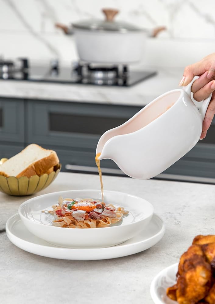 لا مزيد من البقع على سطح الطاولة وفوضى الكتان: بغض النظر عن مدى سُمك أو عصير أو حار أو خفيف، يمكننا أن نضمن لك أن هذا الوعاء لن يخلق فوضى على الطاولة. تم تصميم جميع قوارب المرق لدينا بدقة لتكون ذات شفة كبيرة! فوهة الصب المريحة ستؤدي تقديم الطعام بدون قطرات في كل مرة! جربها وشاهد الفرق بنفسك! وداعاً للبقع اللزجة على مفارش المائدة المصنوعة من الدانتيل المفضلة لديك!