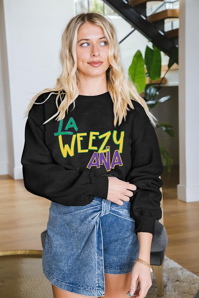 سهل الملاءمة: هذا السويت شيرت الجذاب Mardi Gras مثالي للارتداء مع الجينز الضيق أو السراويل القصيرة أو التنانير أو البنطلونات، مما يجعله قطعة متعددة الاستخدامات لأي زي احتفالي.