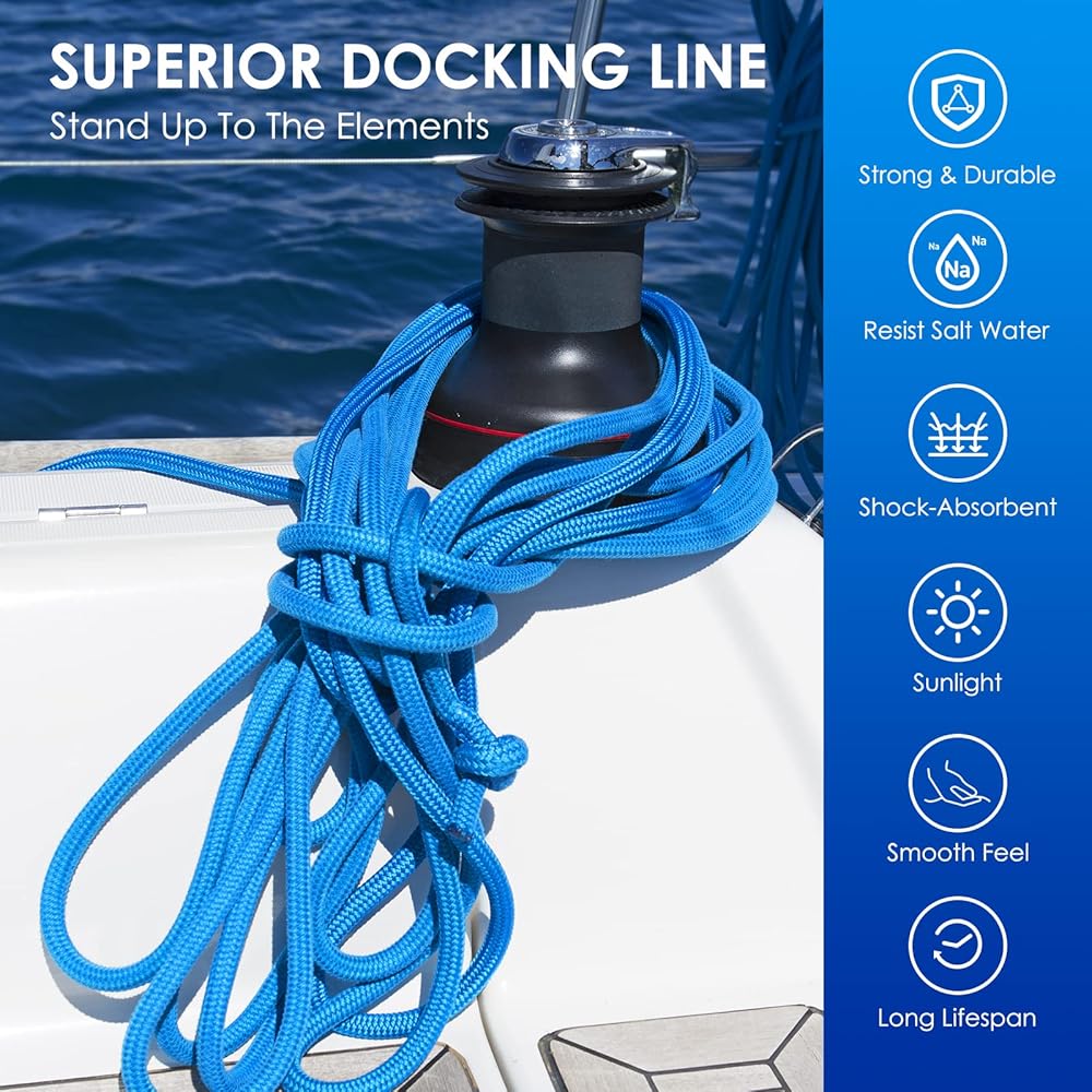 【قوية وطويلة الأمد】 حبال رصيف النايلون من الدرجة البحرية مثالية لتأمين سفينتك في التجوية الشديدة. تتميز حبال النايلون من الدرجة البحرية بقوة شد أعلى من الأشياء الأخرى لخط الرصيف. مع قوة كبيرة ومقاومة تحميل الصدمة ، مما يجعلها قوية بشكل استثنائي وقادر على مقاومة المياه المالحة والغاز والزيت والأحماض والتآكل وحتى الأشعة القاسية للشمس.