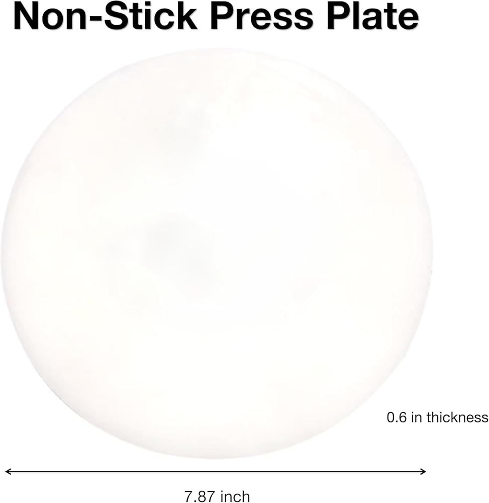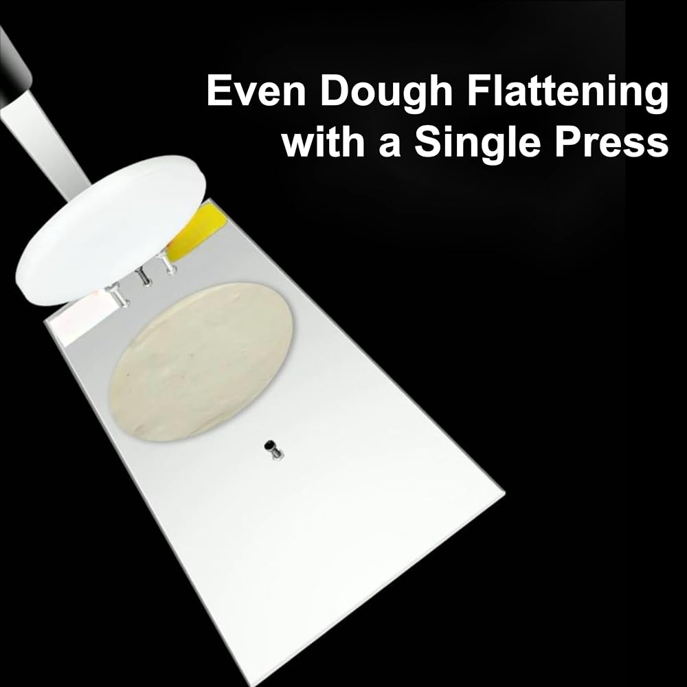 Pizza Dough Press Machine comes with a non-stick large press plate of 7.87inch diameter and 0.6in thickness, ensuring even dough flattening with a single press and avoiding sticking