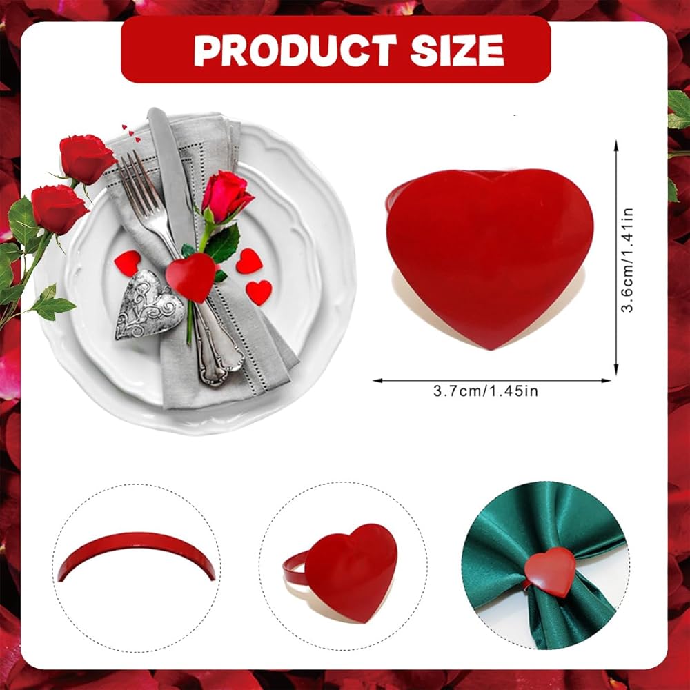 Occasions: Red Heart-shape napkin ring can be used as in the decoration of the dining table for the family, wedding, birthday party, restaurants, hotels, Valentine's Day, Festivals, friends' gathering, and daily life kinds
