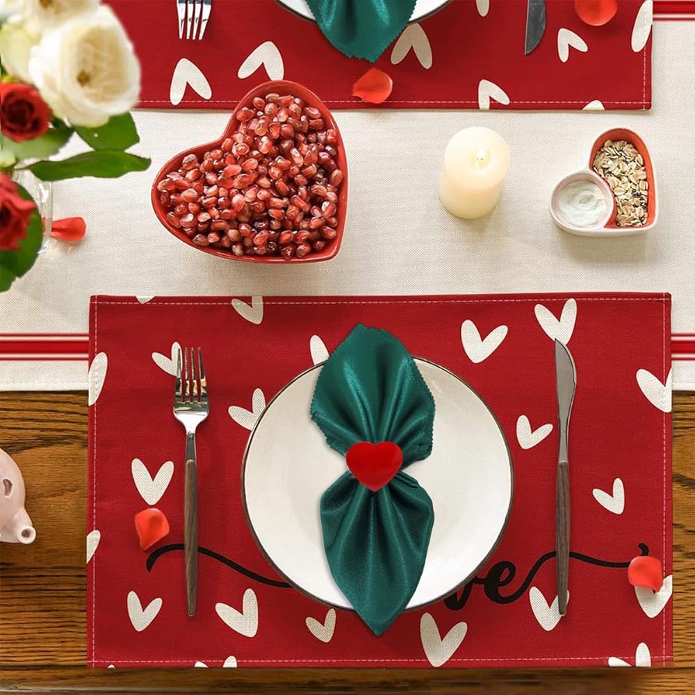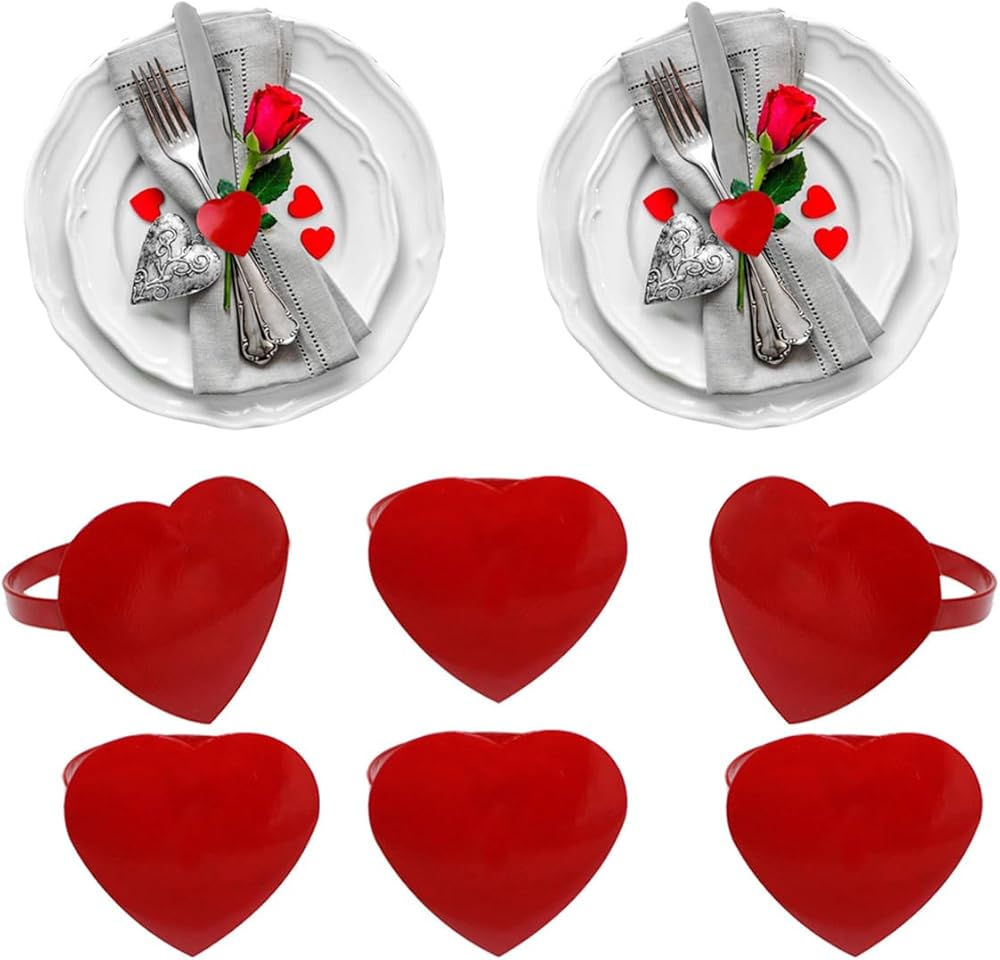 Valentine's Day Napkin Rings Set of 6, Red Hearts Napkin Ring for Wedding, Anniversary, Banquet, Serviette for Xmas, Thanksgiving Day, Birthday Dinner Party